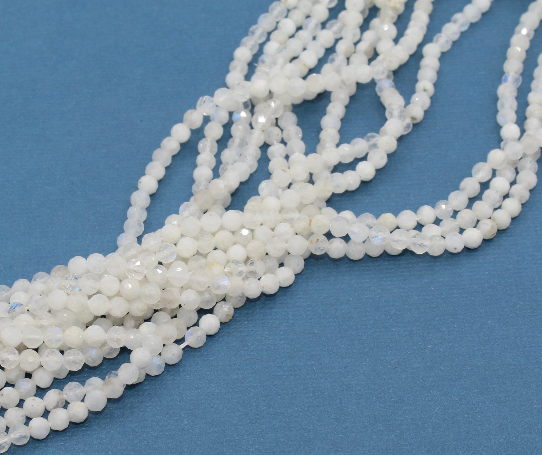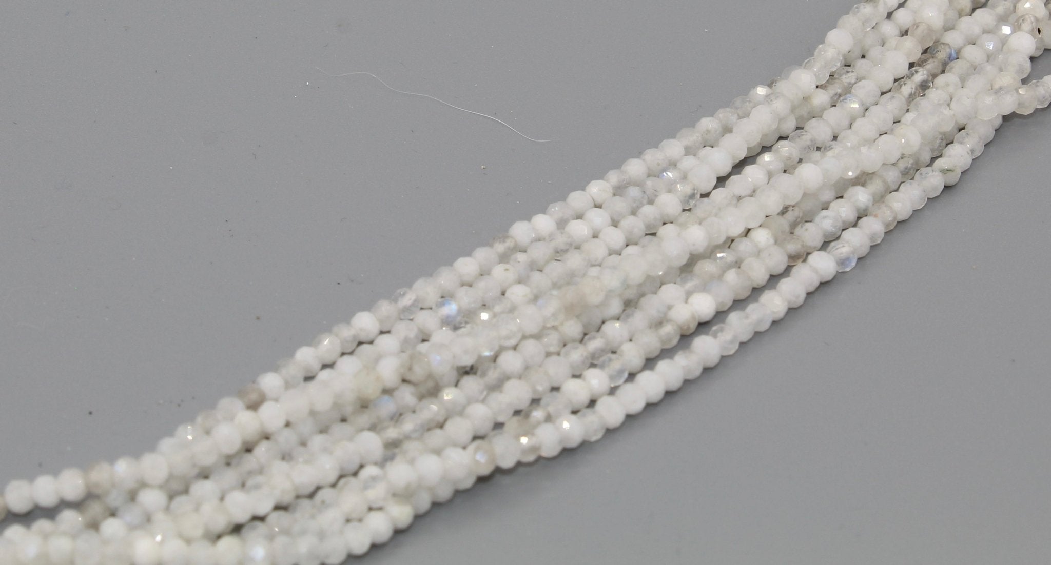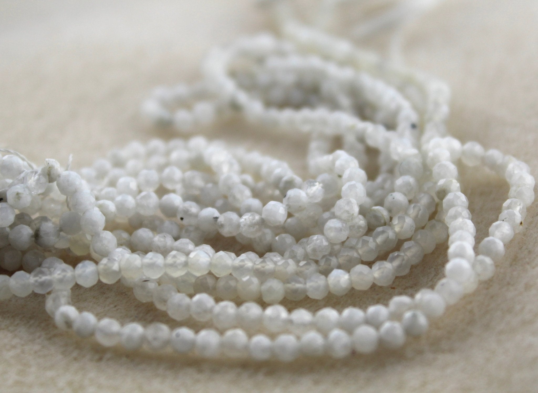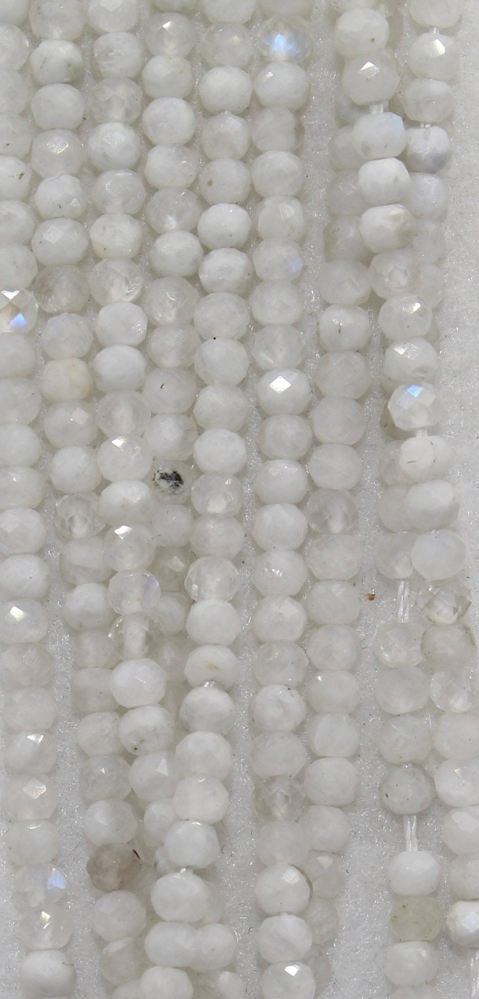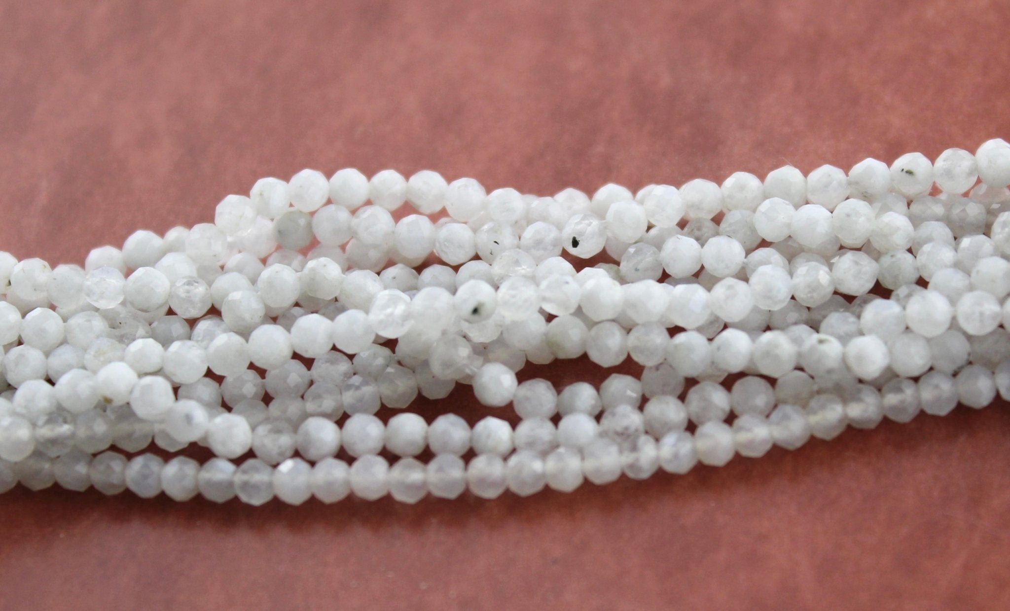Moonstone occurs in a variety of colors, but most commonly appears as white, clear, gray and peach. It is a feldspar, and is known for its moon-like shimmer when held to the light.