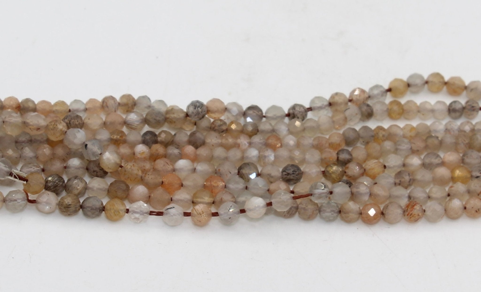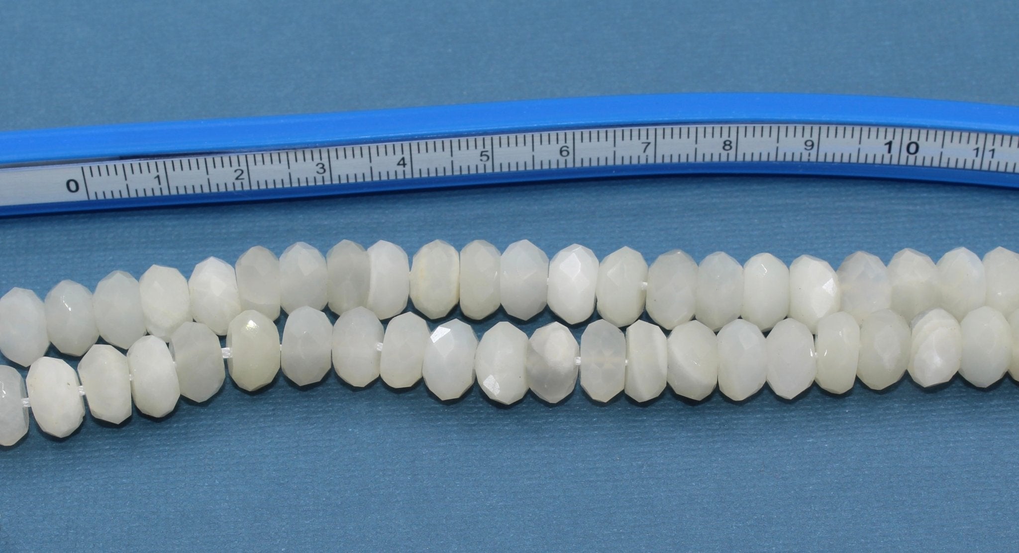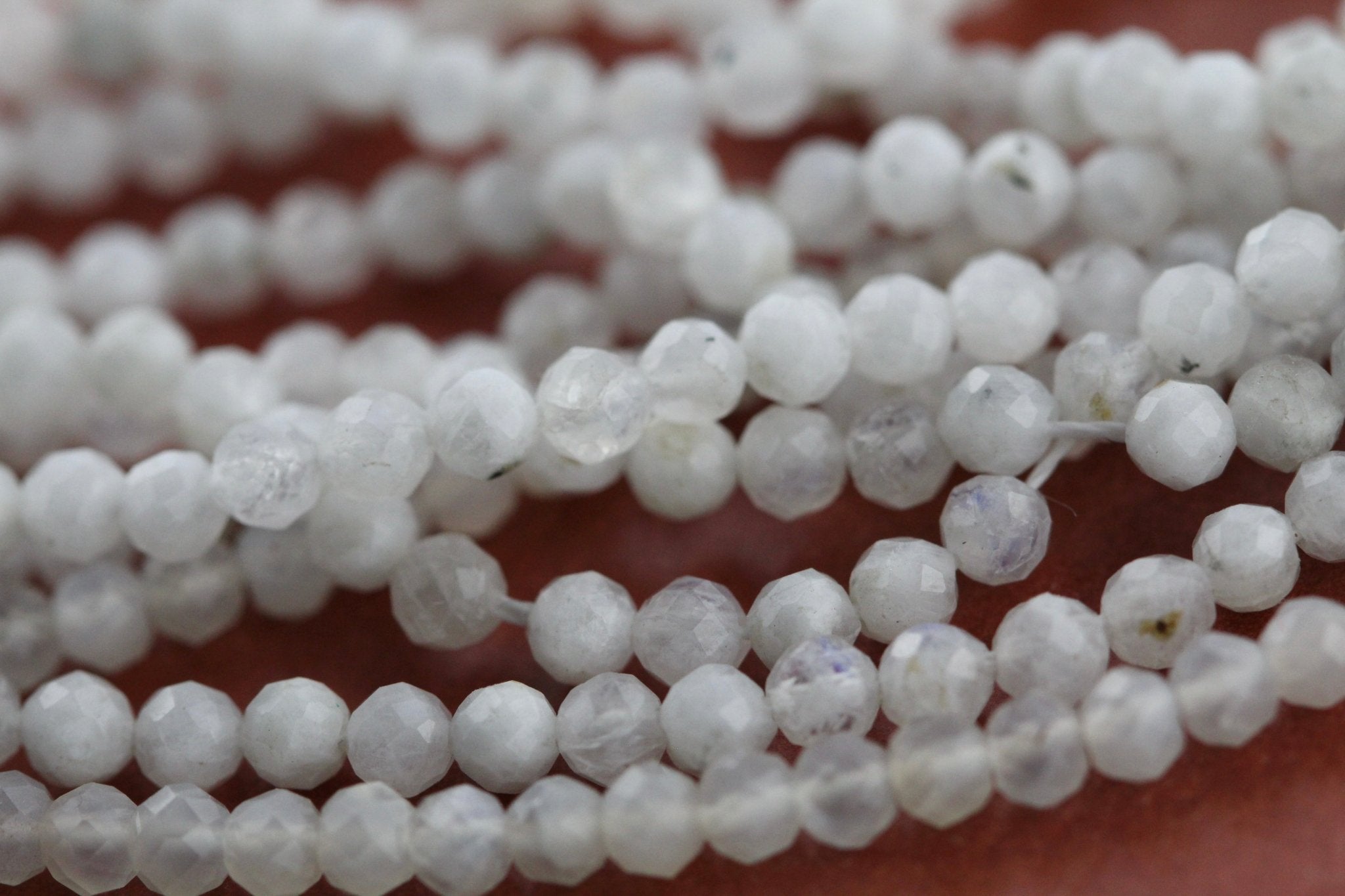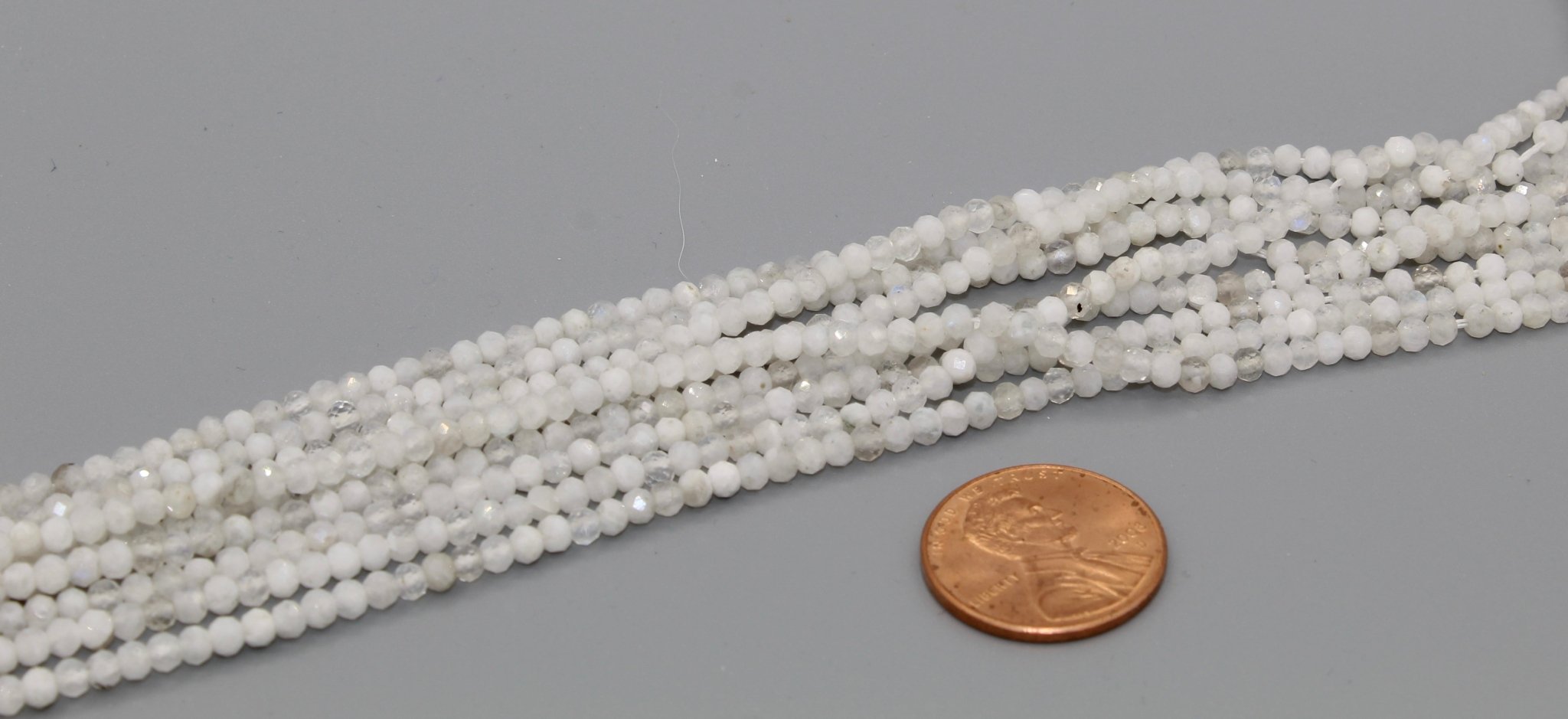 Moonstone occurs in a variety of colors, but most commonly appears as white, clear, gray and peach. It is a feldspar, and is known for its moon-like shimmer when held to the light.