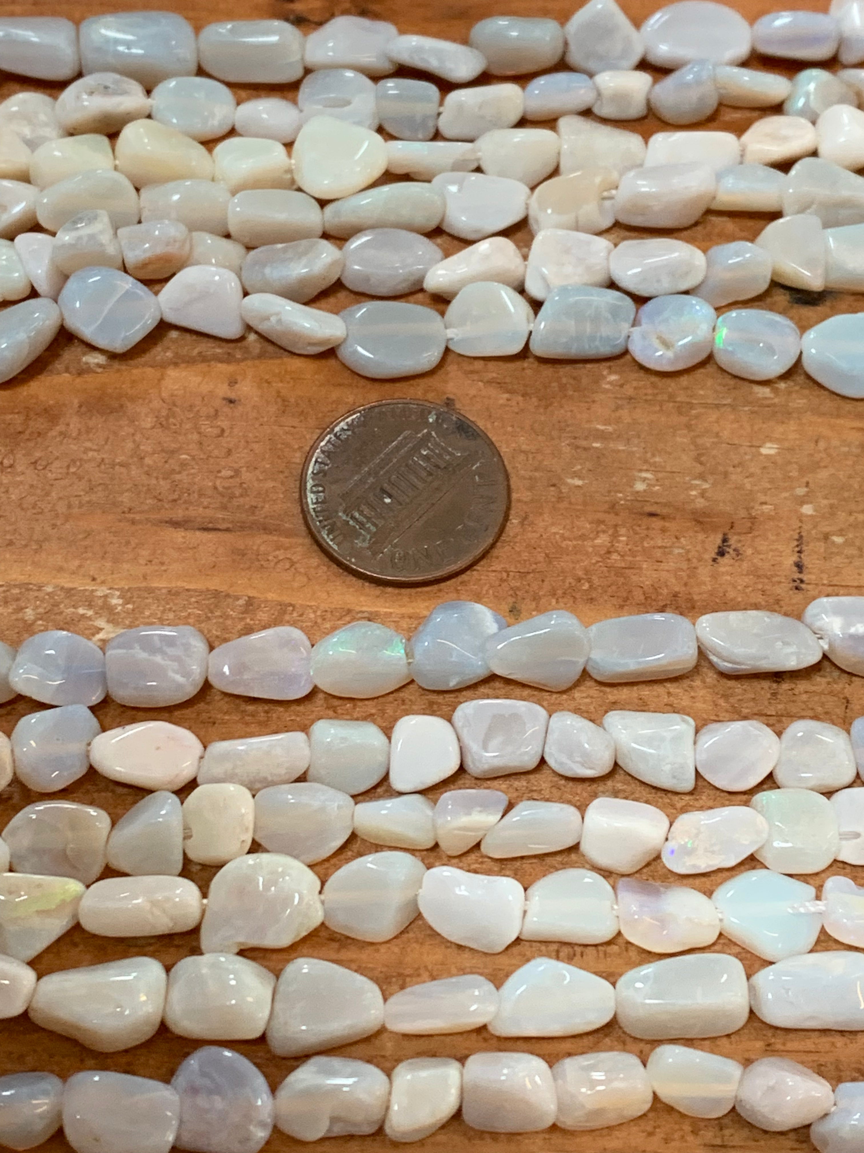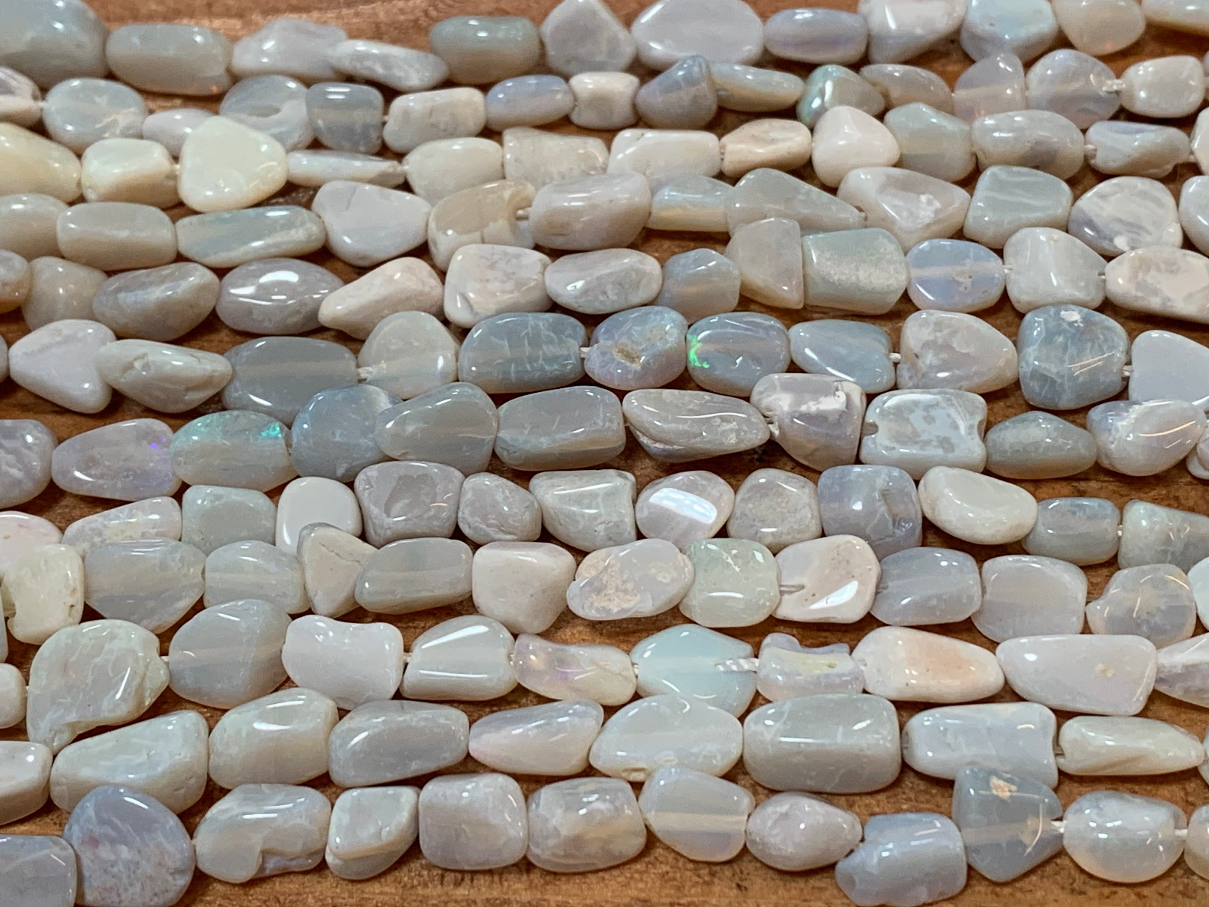 These Opal beads are sold in an 8” strand with approximately 22 beads. The nuggets range in size from 4 to 8mm.