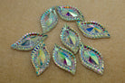 They are Crystal AB, and have flat backs. They are 15mm x 30mm (.6 x 1.2”).