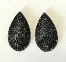 There is a flower pattern etched on the front of each teardrop and the backs are flat. They are sold as a pair.