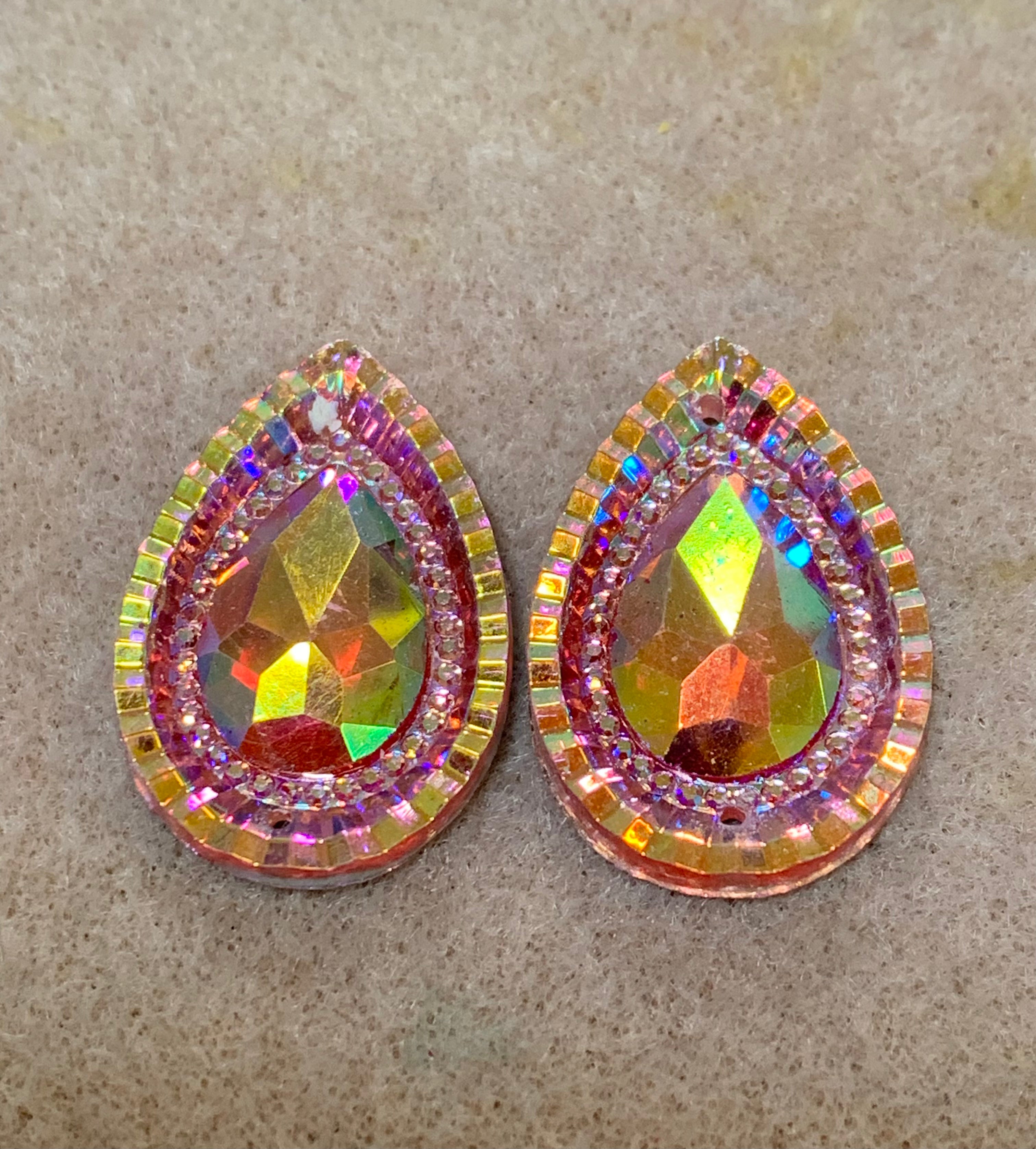 These resin centerpieces are sold by the pair. They are 20 x 30mm and have two holes to sew them down onto foundation.