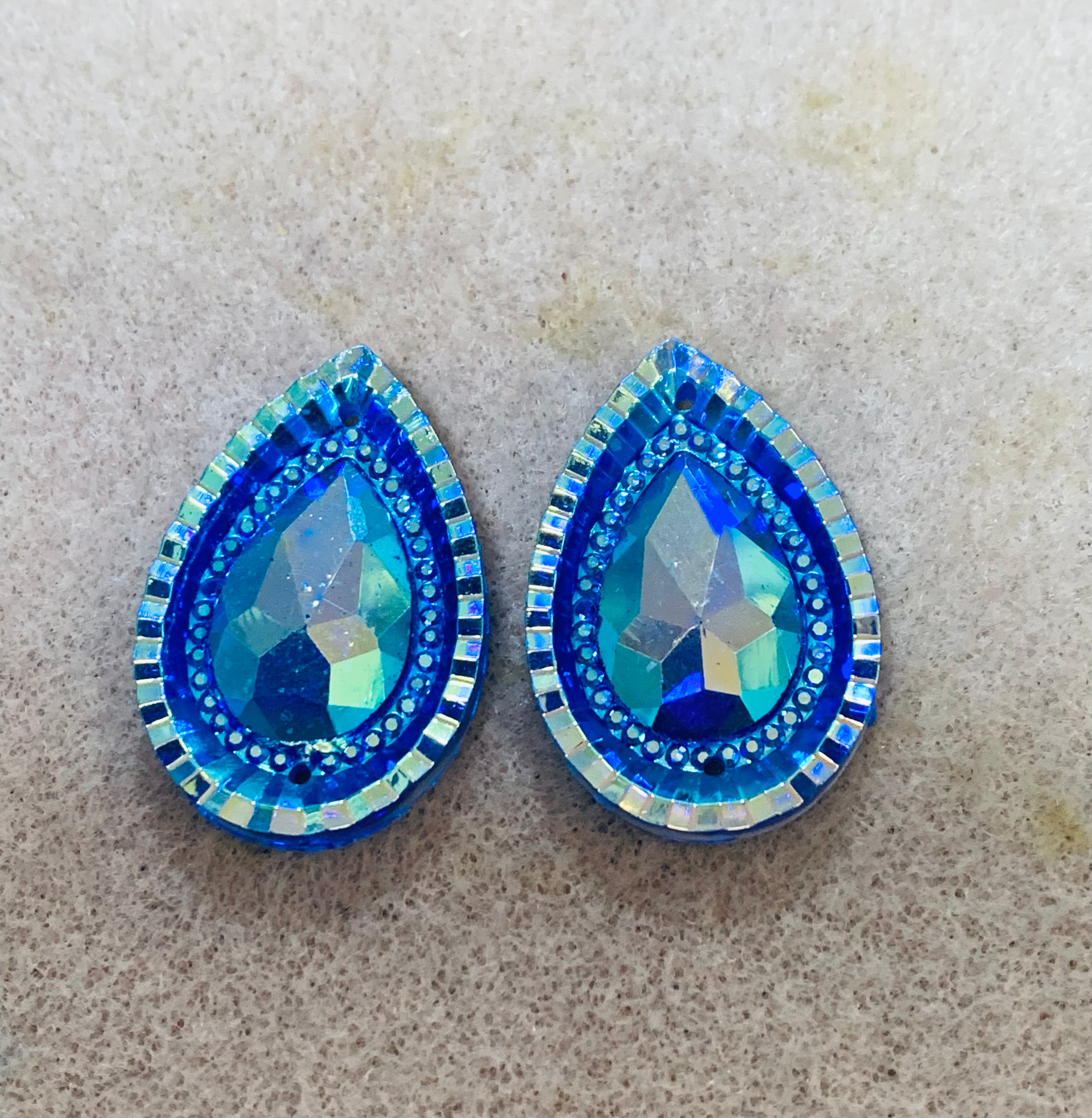 These resin centerpieces are sold by the pair. They are 20 x 30mm and have two holes to sew them down onto foundation.