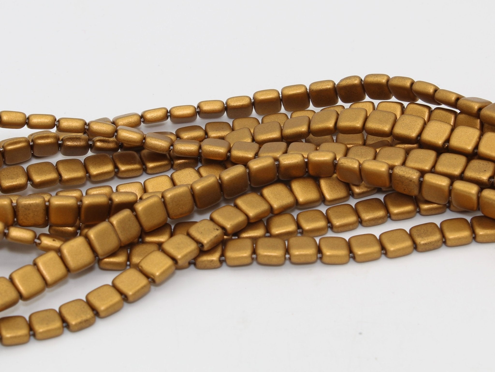 These Czech Mate Tile beads are 6mm square beads with two holes. They are ideal for wrap bracelets, bead embroidery and mosaic projects.