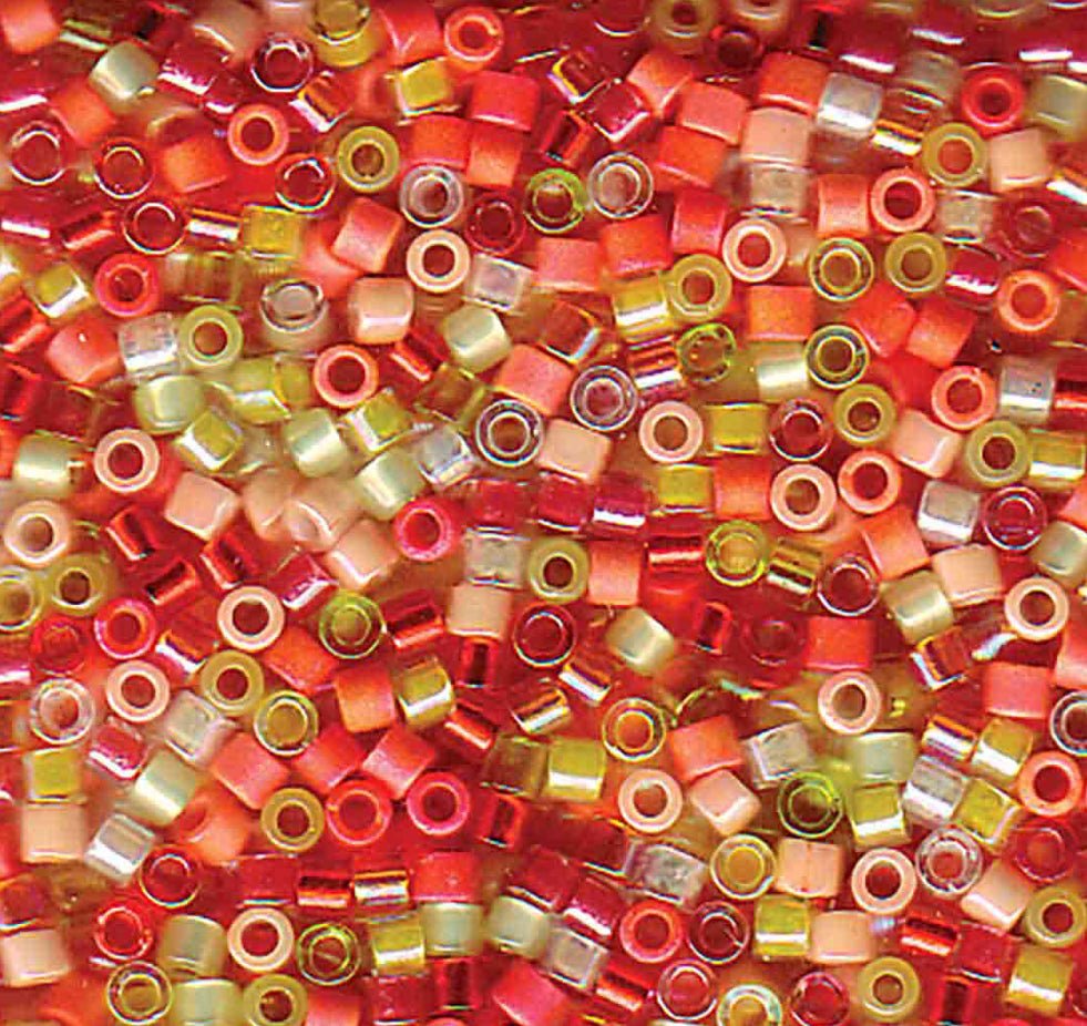 These are size 11 Delica Beads. Delica beads are glass beads made by the Miyuki company in Japan. Size 11 is smaller than size 10.