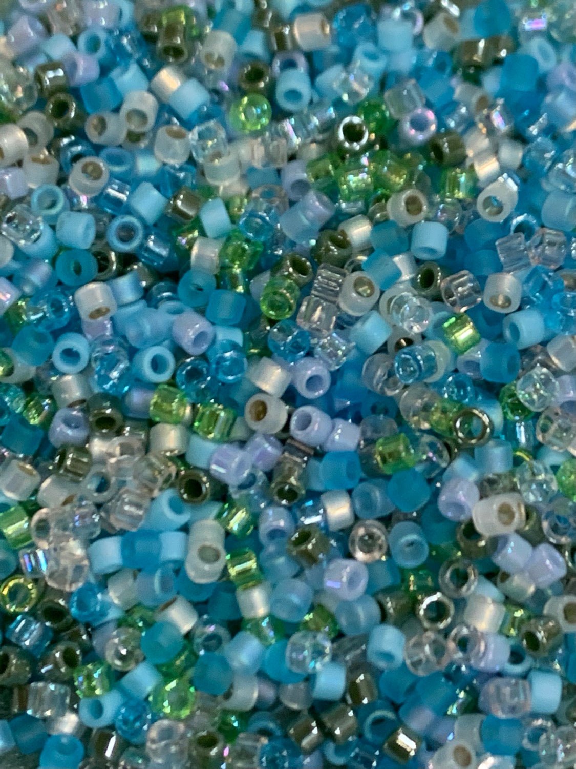 These are size 11 Delica Beads. Delica beads are glass beads made by the Miyuki company in Japan. Size 11 is smaller than size 10.