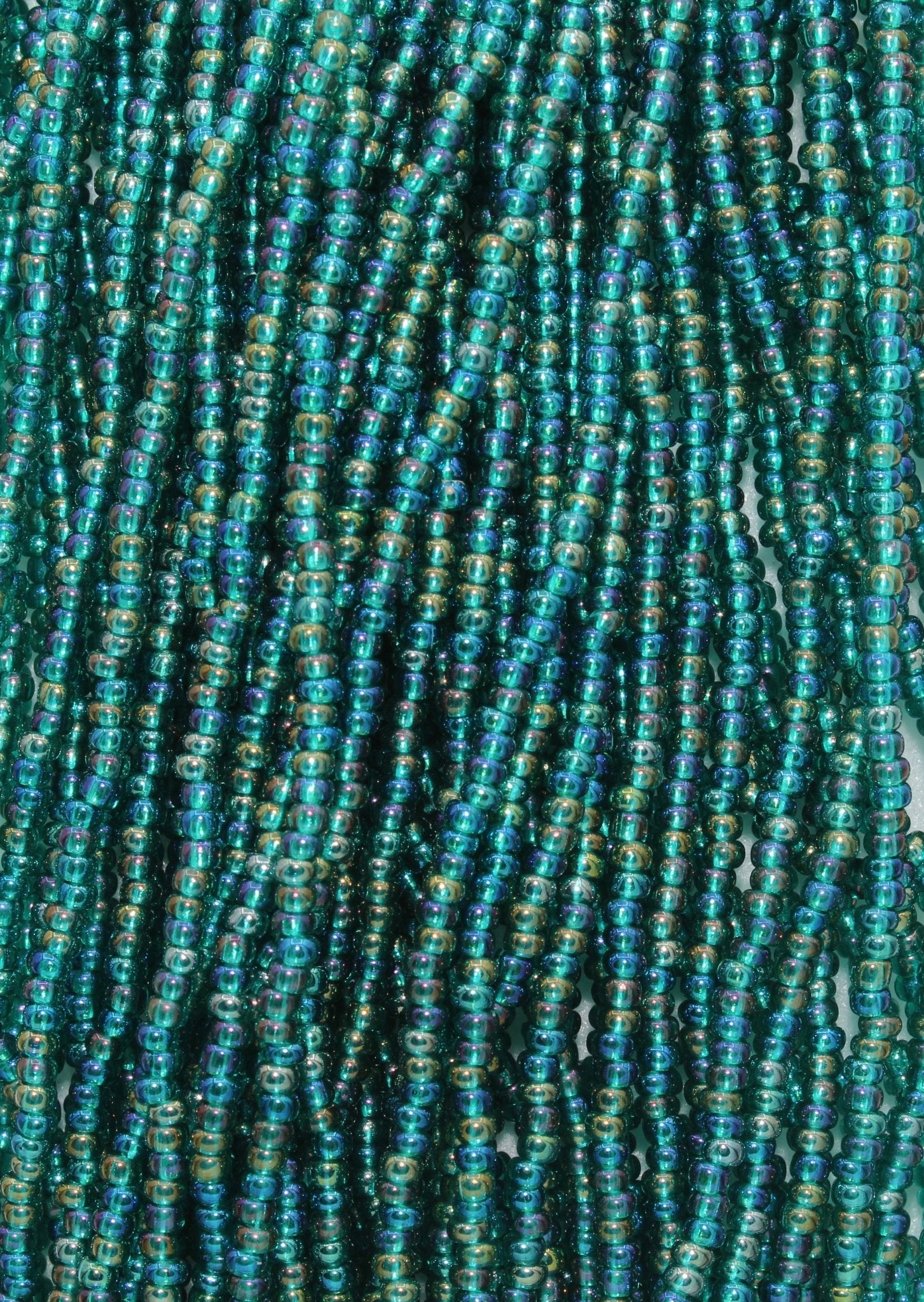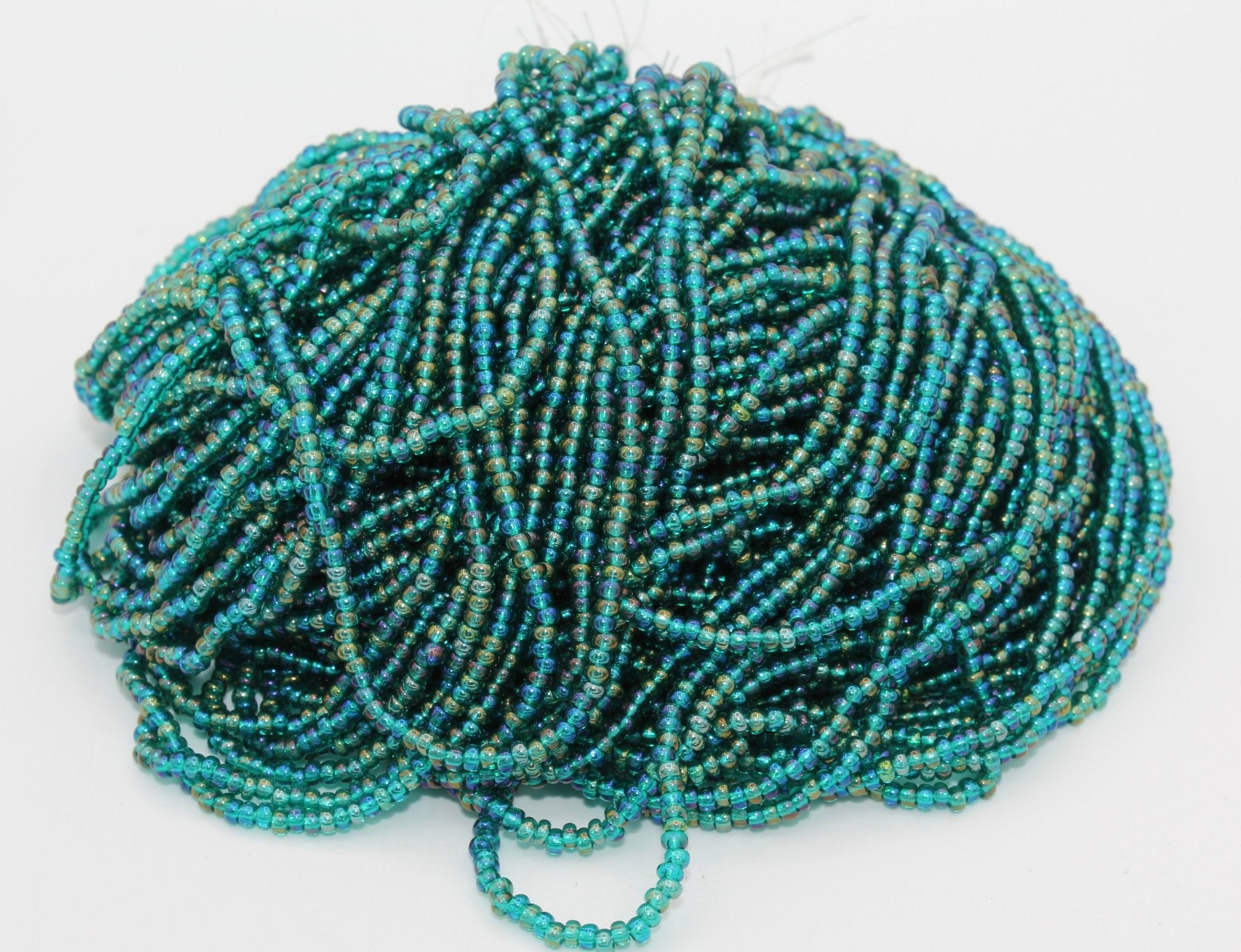 These size 10 seed beads are sold by the hank. Each hank has 12 strands of beads with a total of approximately 3800 beads.