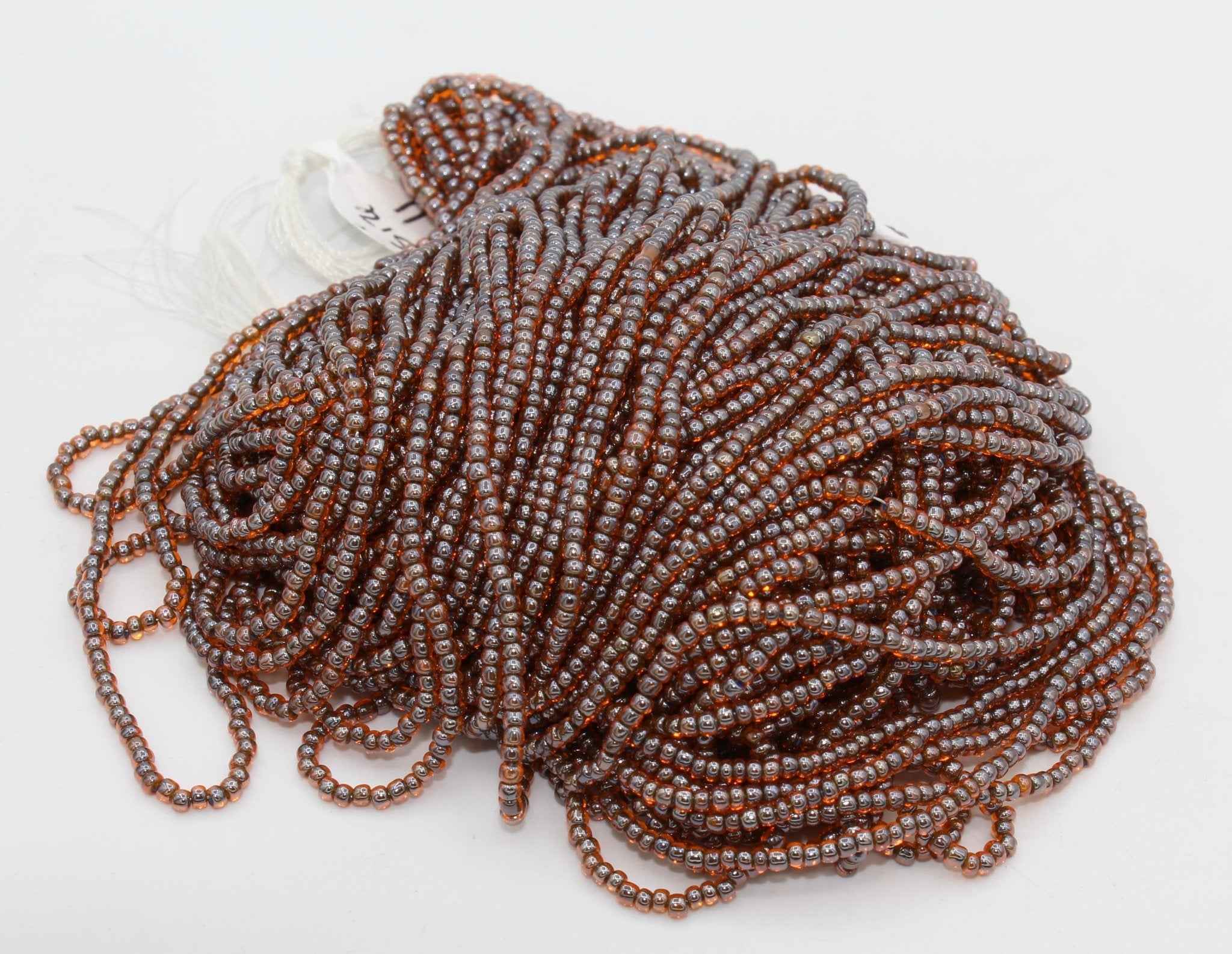 These beads are sold by the hank. Each hank has 12 strands with a total of approximately 4,000 beads. Lined up on a needle, roughly 17 beads = 1 inch (25mm).