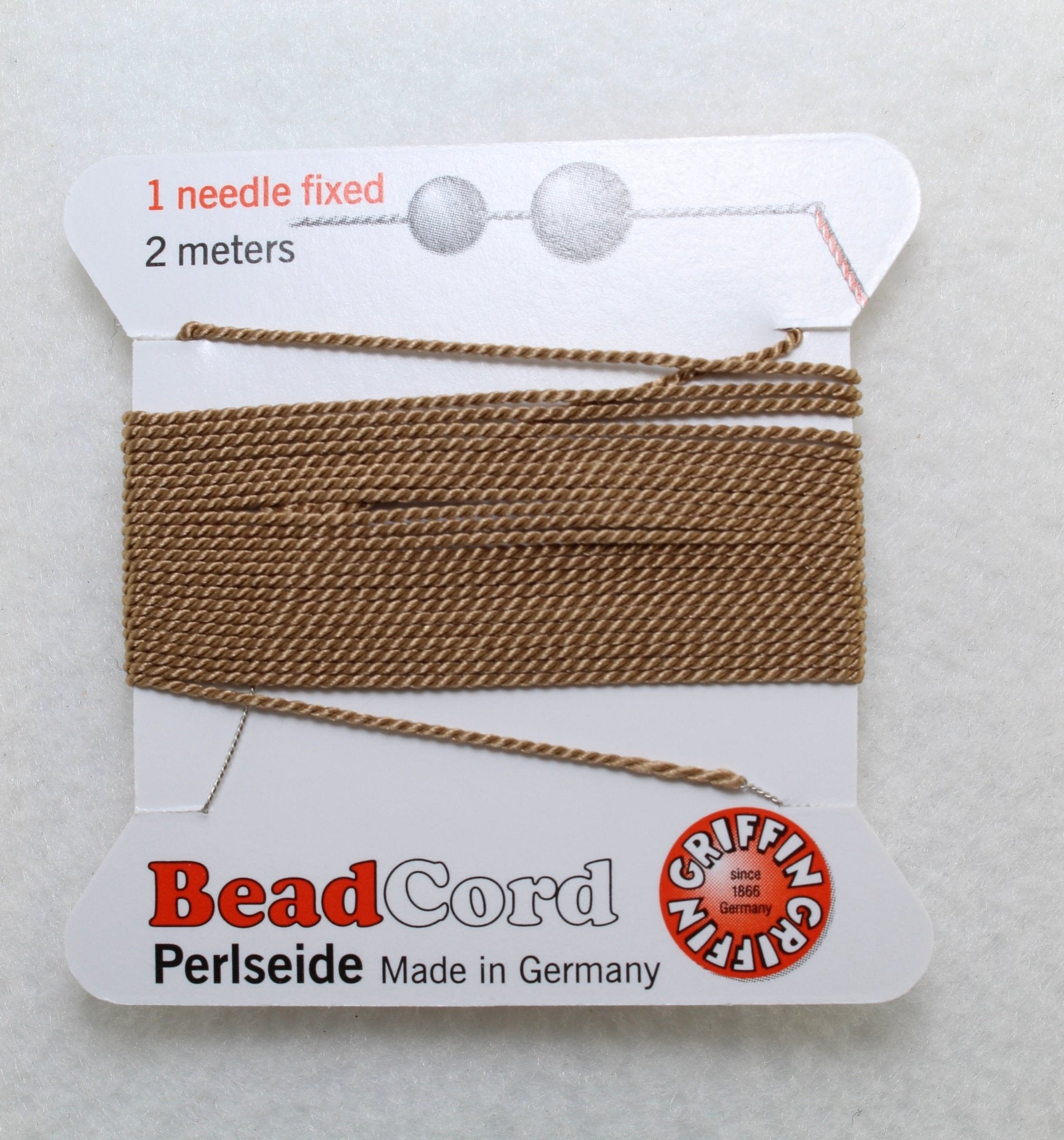 Silk on a Needle by Griffin is wonderful for knotting pearls or semi-precious stones. Each package of silk is 2 meters long (6 ft. 6") and has a wire needle already attached.