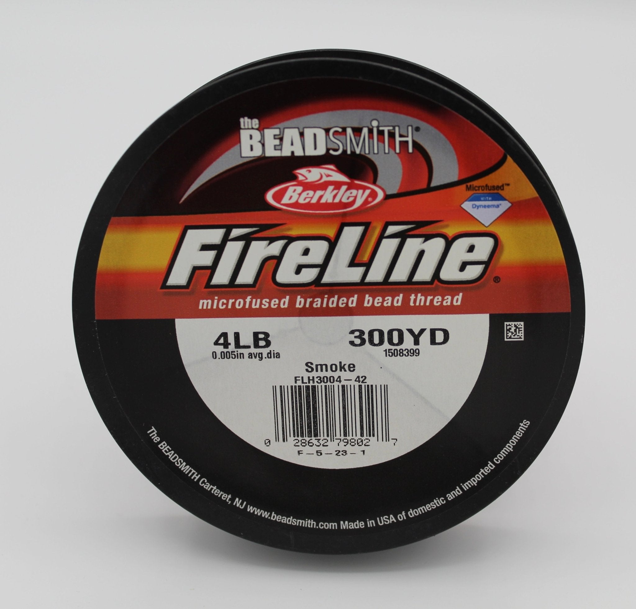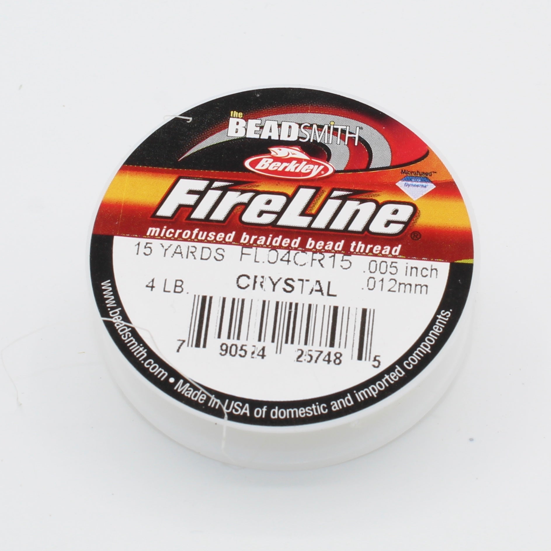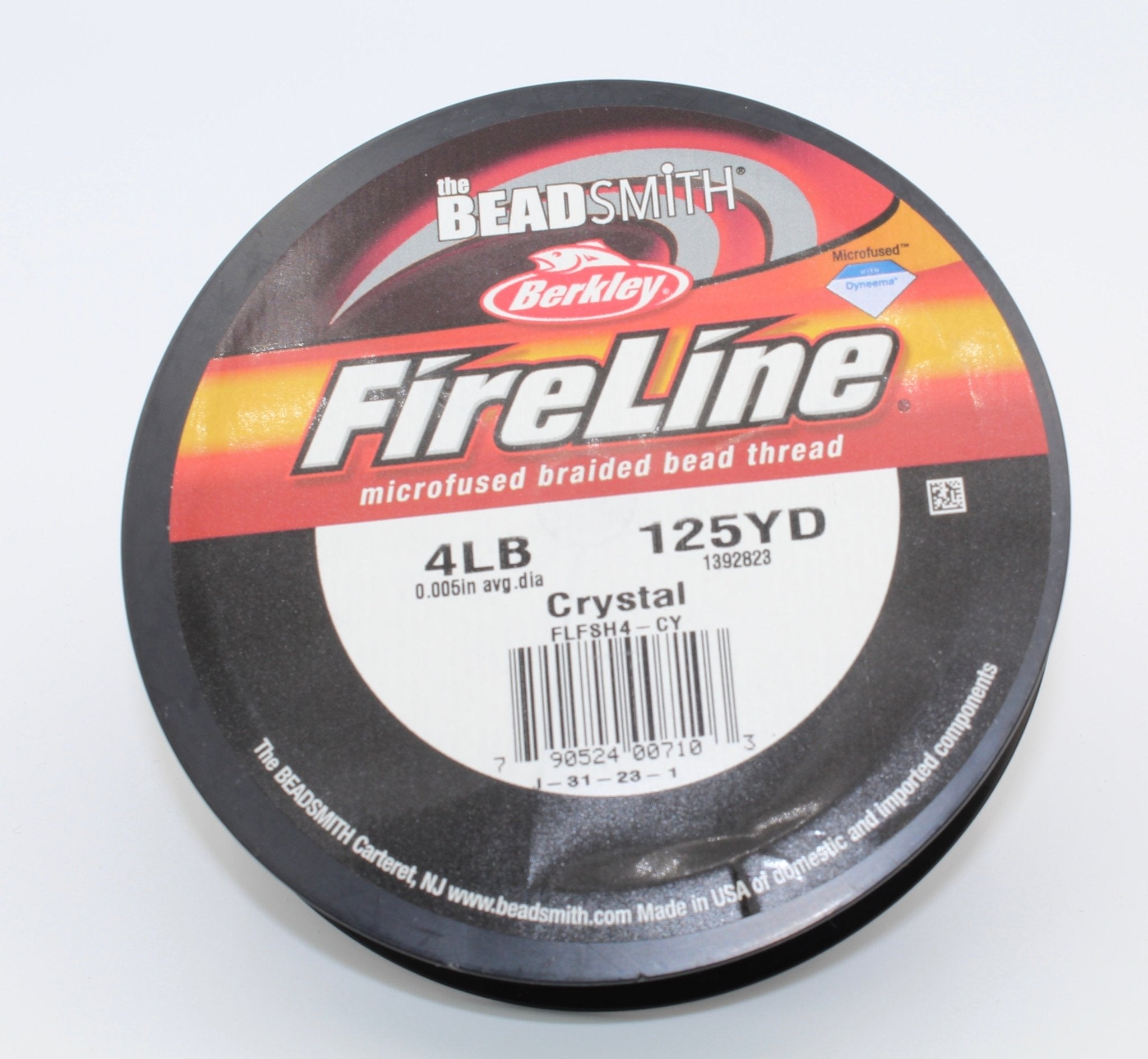 This 4lb. Fireline is a braided bead thread that looks and feels like sewing thread. It’s diameter is .007”. It is sold on a spool of either 50 or 125 yards.