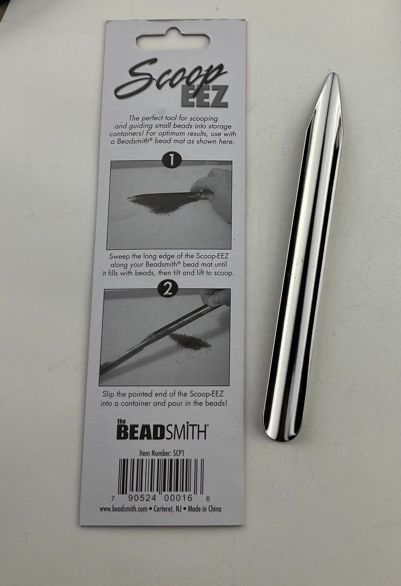 Pick up your beads more easily with this bead scoop. At 6" x 3/4" (15cm x 2cm), it is perfect for seed beads or other small beads - just pick up the beads along the long edge of the scoop and pour them back into their containers with the pointed tip.