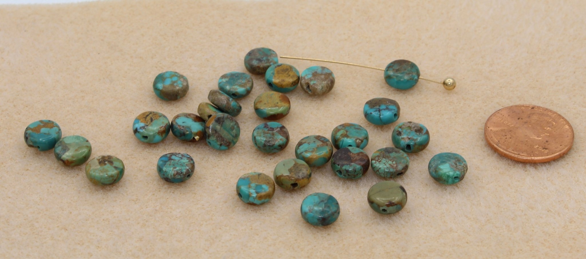 Take your southwestern jewelry to a new level with our extensive selection of real Turquoise. Turquoise ranges in opaque colors from bright blue to dark green with veins of browns and copper. It is perfect for stringing in necklaces, earrings, and bracelets.