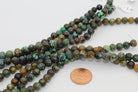 These beautiful round Turquoise beads are a deep green with pops of blue and plenty of copper and brown matrix. They would be perfect in a strung bracelet, necklace or as a mala.