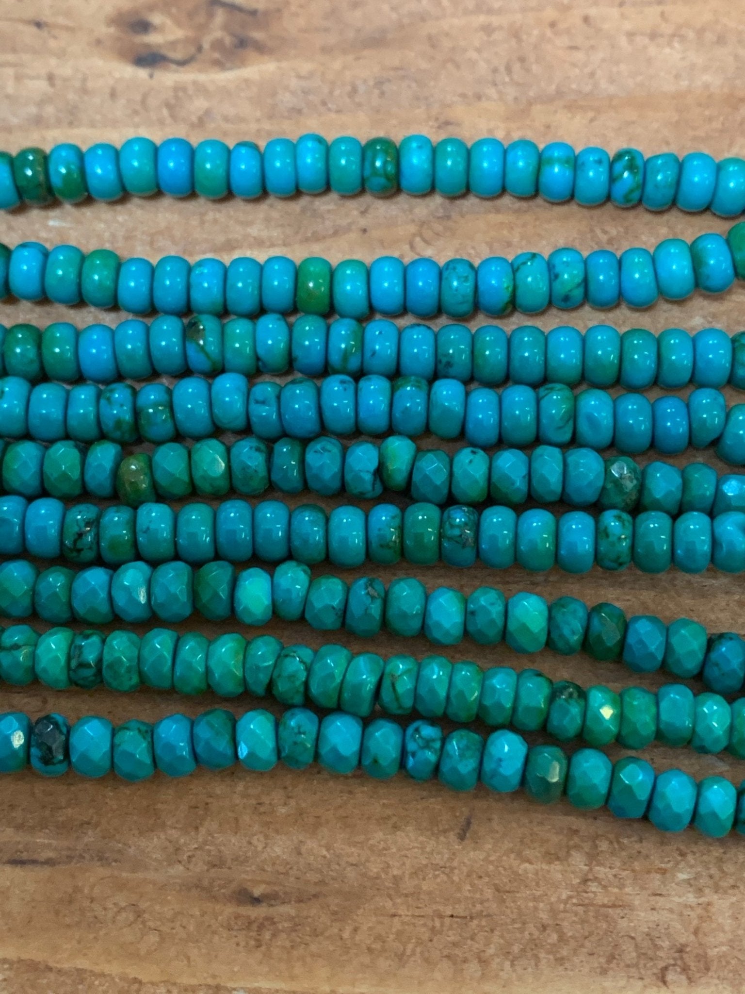 Turquoise is relatively soft, on the 5-6 range of the Mohrs scale. It is is cut into cabachons, focal pendants and beads.