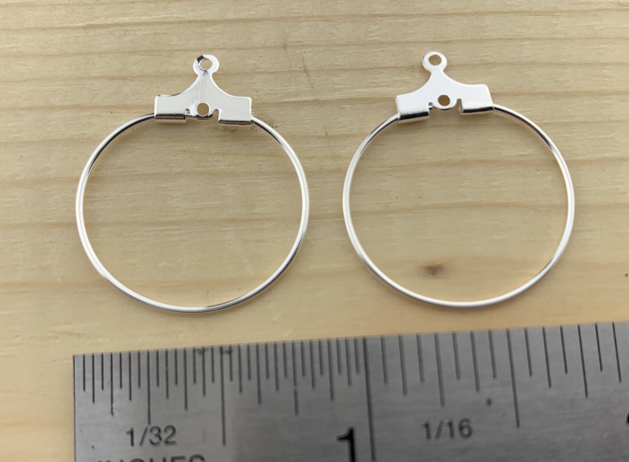 These silver plate hoops are 20mm (3/4") in diameter. They have an opening in the back on which to slide beads.