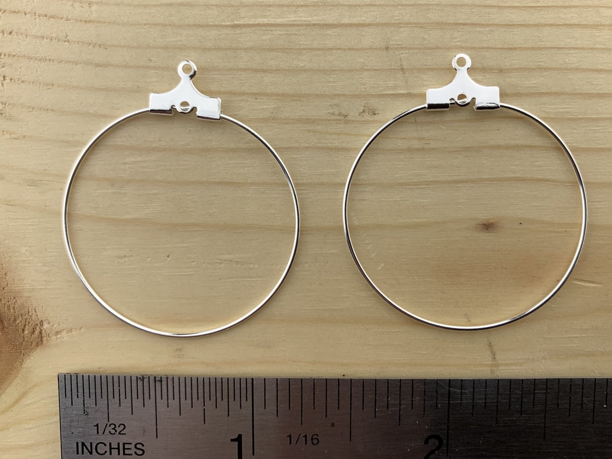 These silver plate earring hoops are 30mm (1 1/8") in diameter.