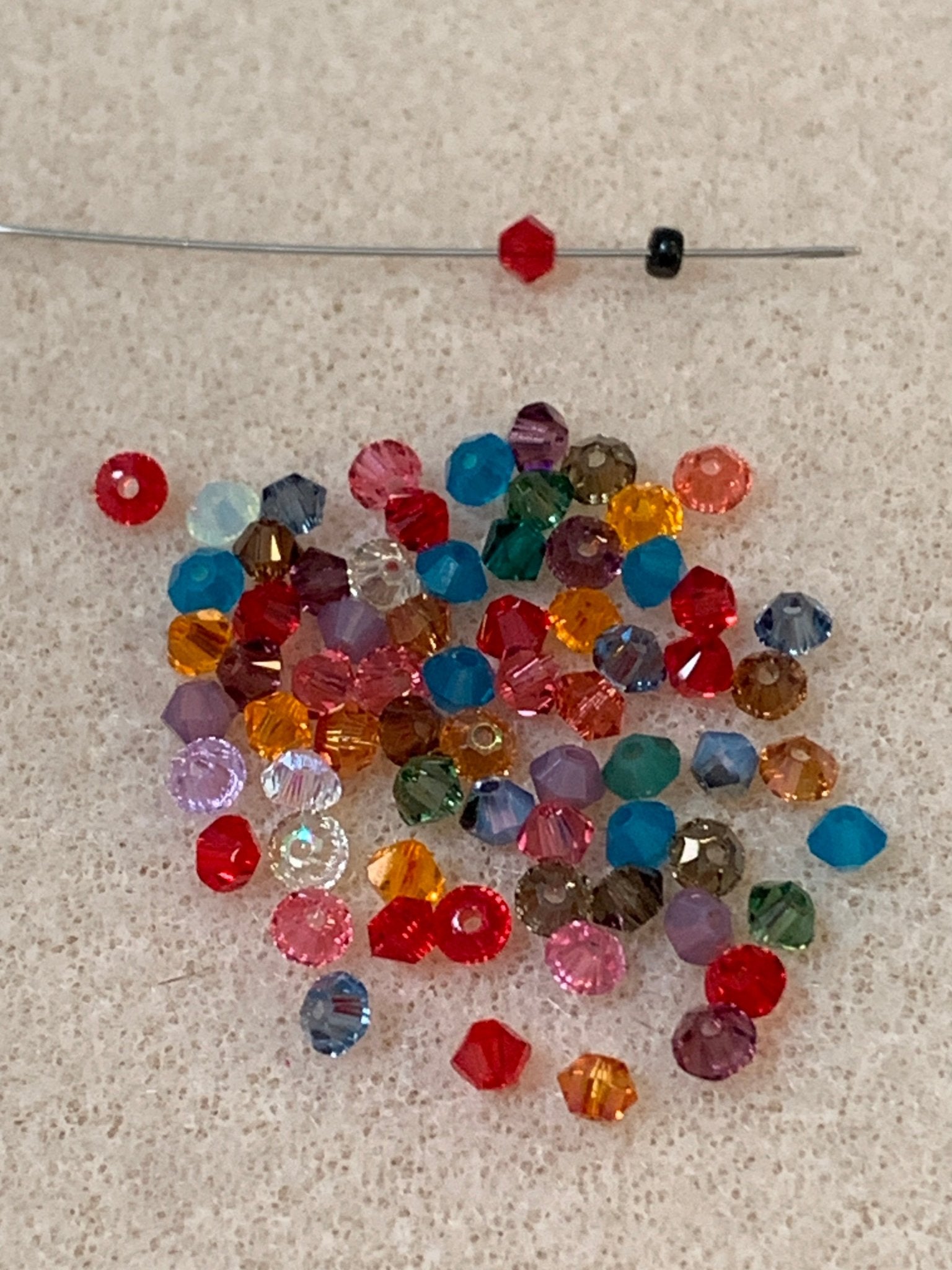 These crystals are 3mm bicones and come in a package of 1/2 gross (72 beads). Each mix is different; please allow for color differences.