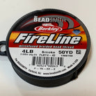 This 4lb. Fireline is a braided bead thread that looks and feels like sewing thread. It’s diameter is .007”. It is sold on a spool of 50 yards.