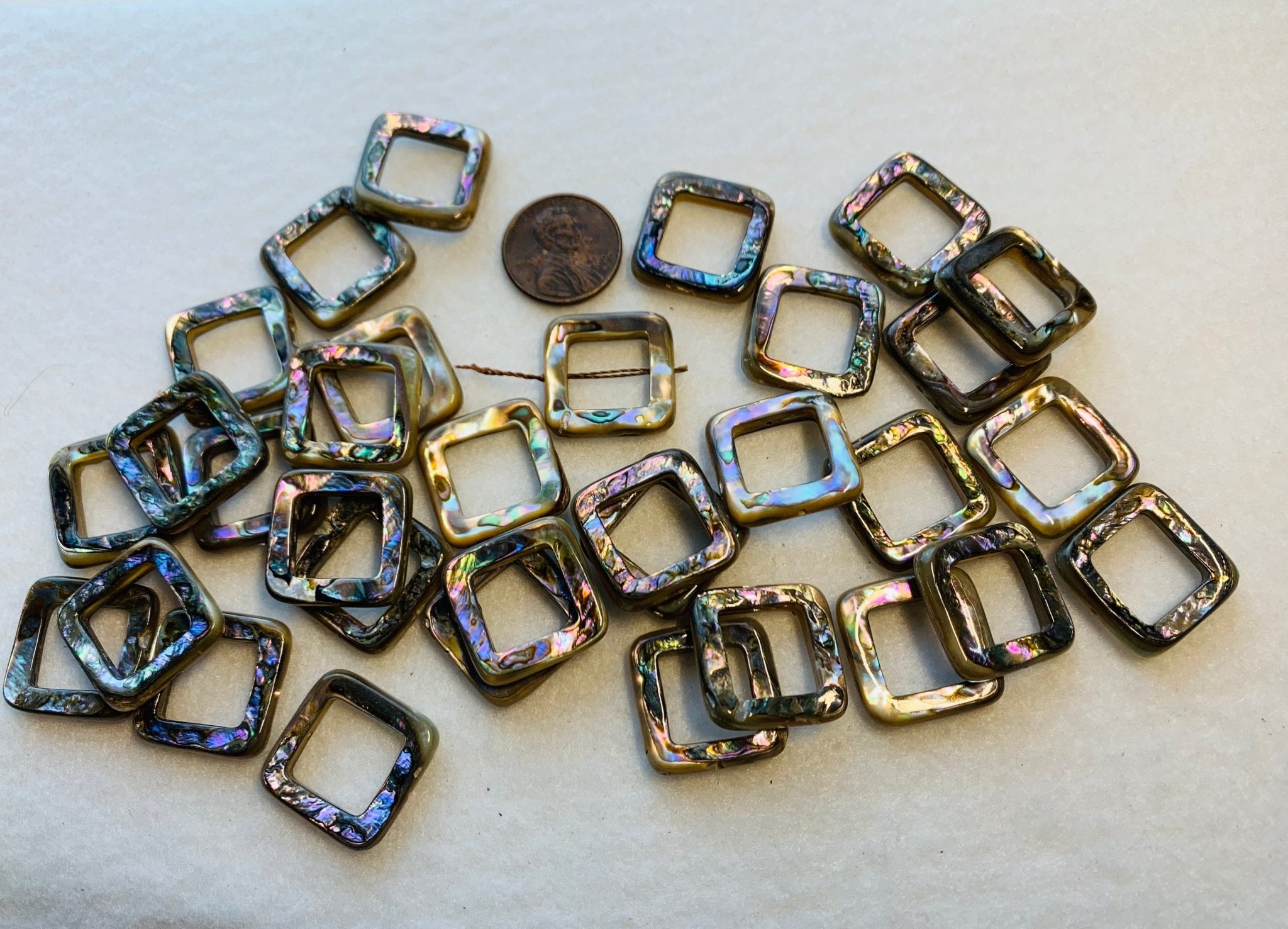 These abalone beads are double sided with the hole running horizontally across the middle (see string in picture). They are 3/4" (18mm) in diameter. They are sold individually.