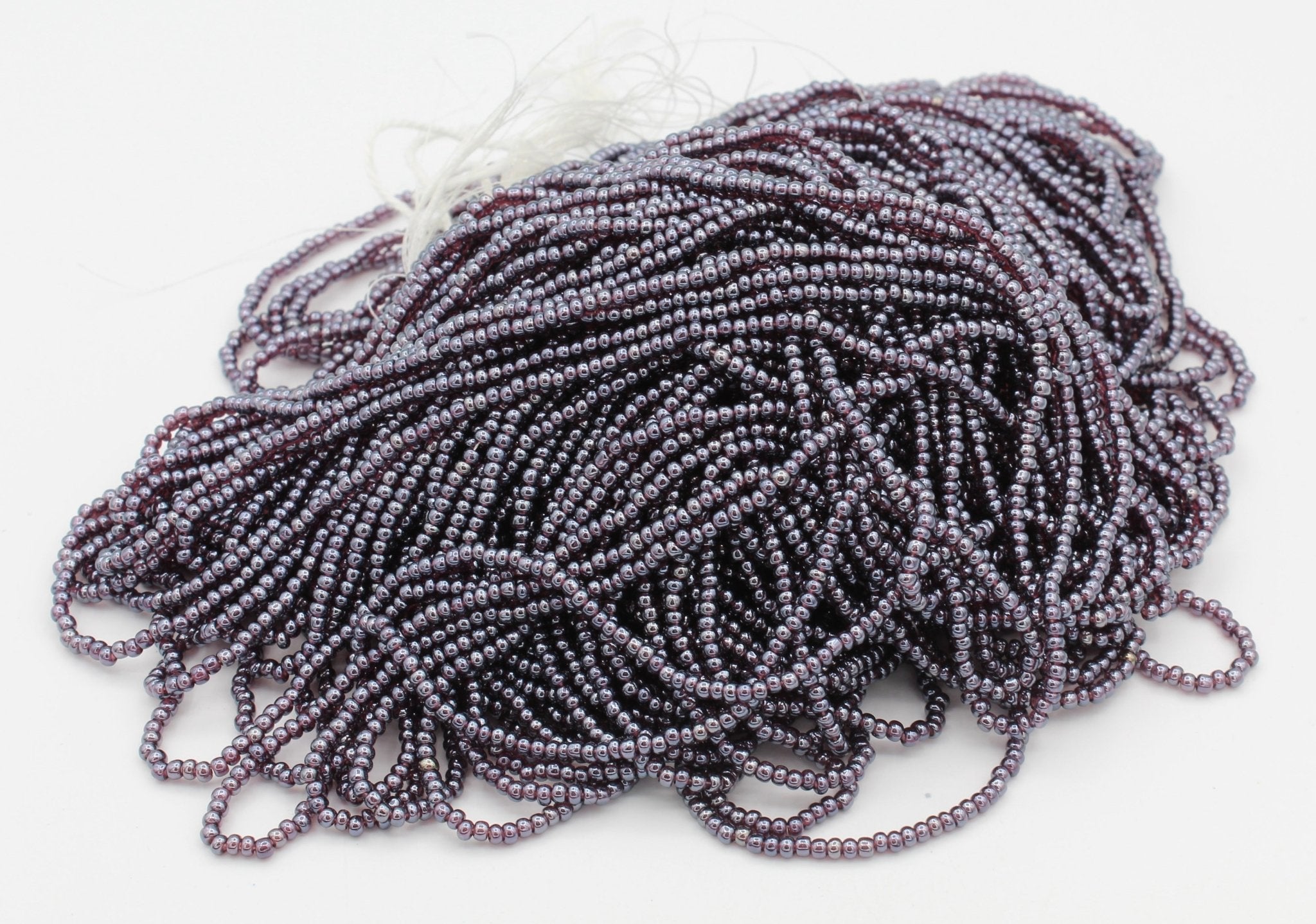 These beads are sold by the hank. Each hank has 12 strands with a total of approximately 4,000 beads. Lined up on a needle, roughly 17 beads = 1 inch (25mm).