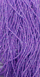 Three cut seed beads are multi faceted all the way around the bead. They are sold as a 10 strand hank with approximately 3,000 beads per hank.