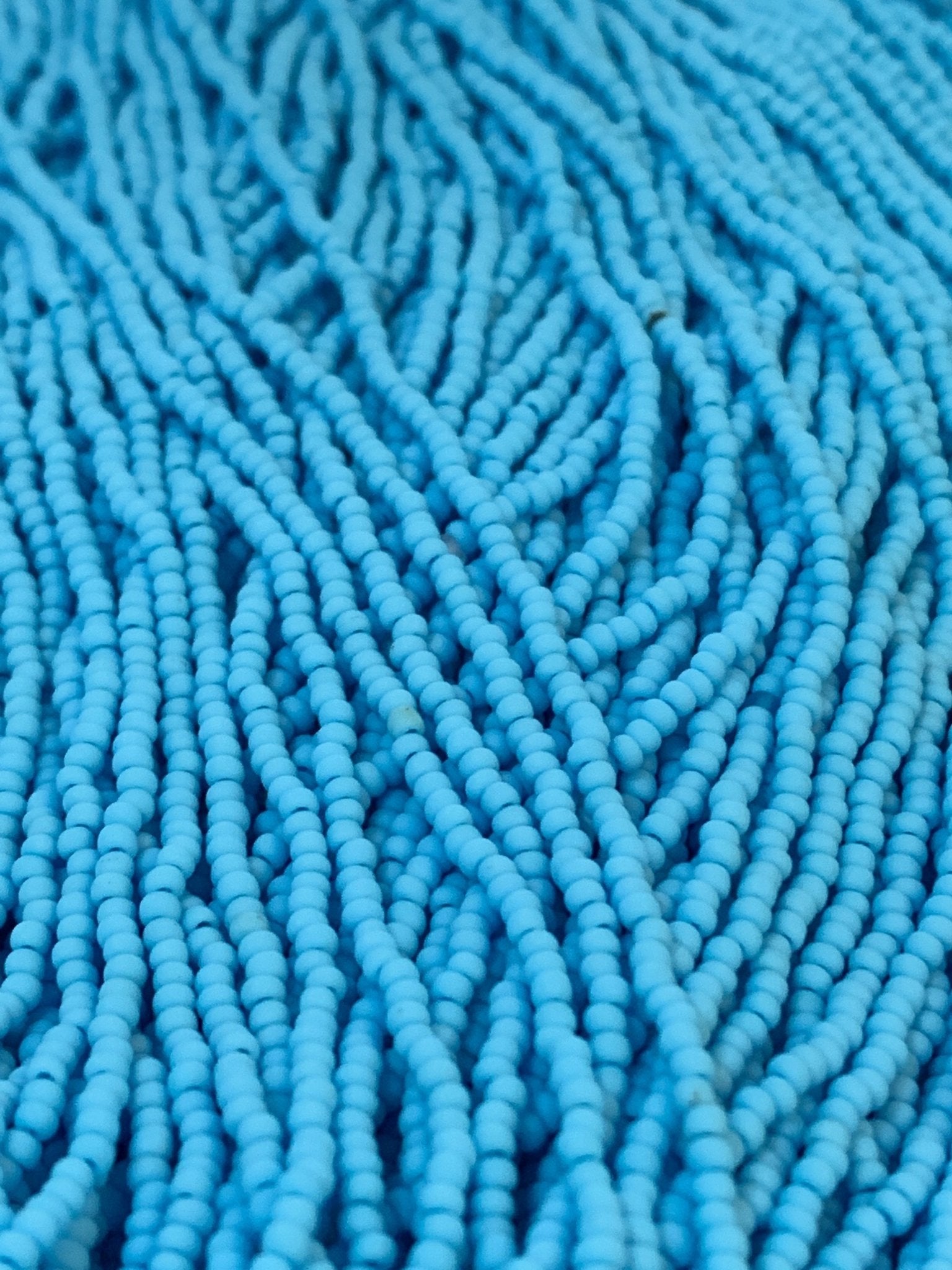 These beads are sold by the hank. Each hank has 12 strands with a total of approximately 4,000 beads. Lined up on a needle, roughly 17 beads = 1 inch (25mm).