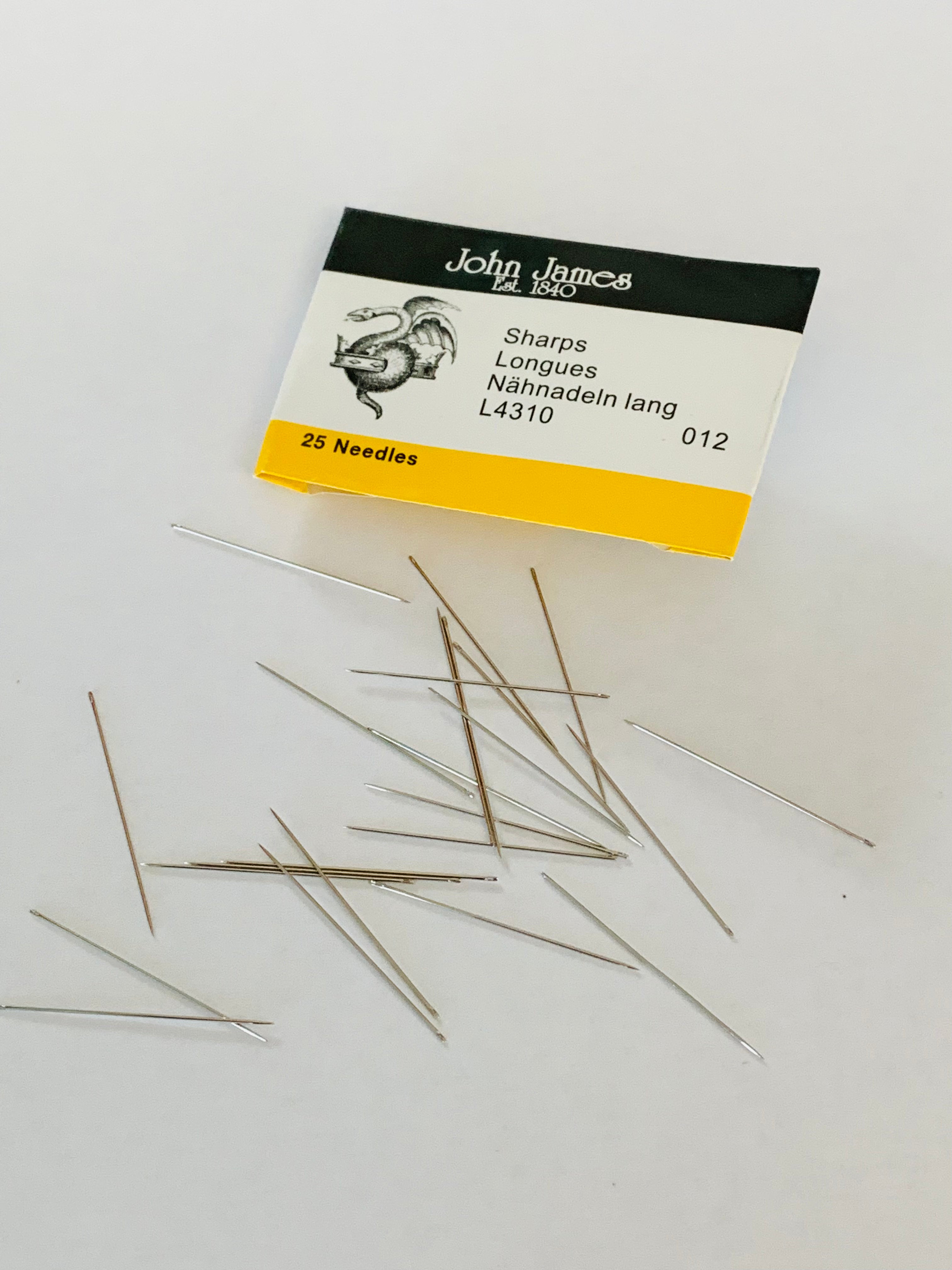 These Sharp beading needles are size 12 and are considered shorts. They are 1.25" (30mm) long.