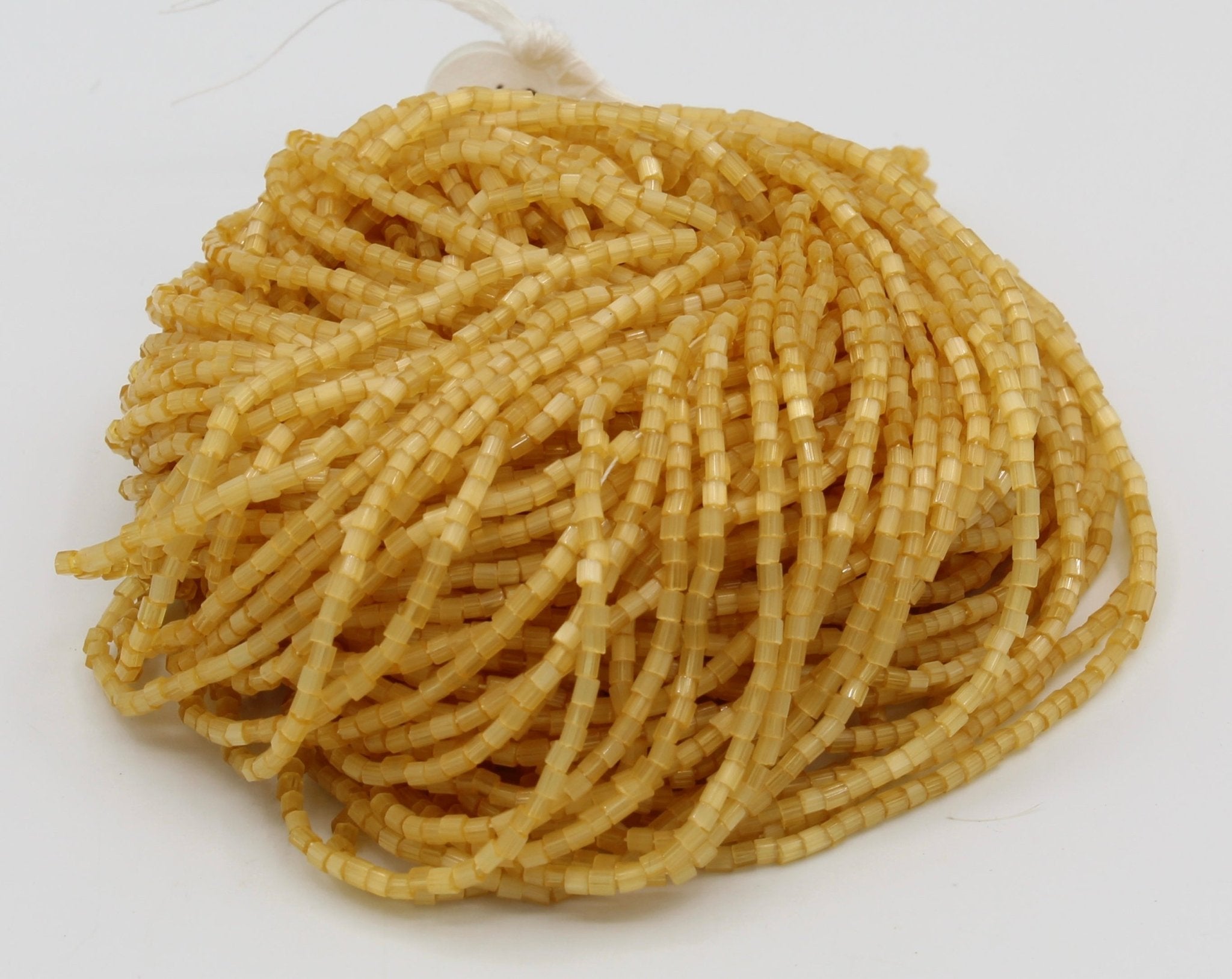 These beads are sold by the hank. Each hank has approximately 3,500 beads on 12 strings. They are often used in bead embroidery and Native American beading and regalia.