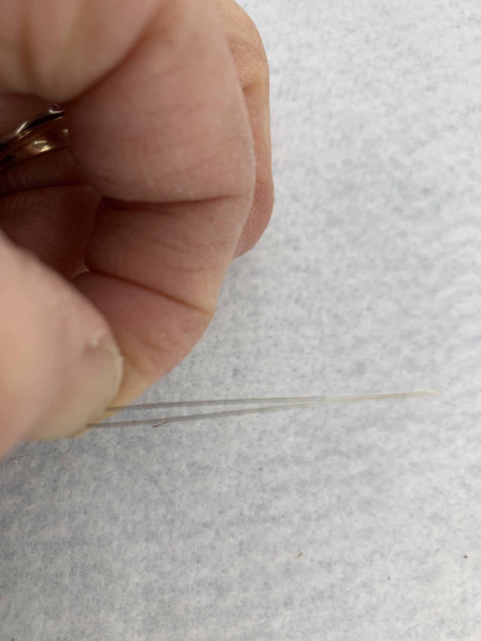These needles are approximately 2" long and come in a package of 4 needles. The needle is comprised of two needles fused together at the ends, creating an opening large enough for thick thread, sinew, yarn, etc. The needles will go through size 11 seed beads, and are somewhat sharp on each end. They are very helpful if you have a hard time threading regular beading needles.