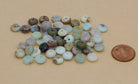 These beautiful Blue Opal Rondelle beads are rondelle shape (flat and circular with the hole through the middle. They are approximately 8mm wide by 3mm high. These beads range in color from blues, blacks, sea green, and opal yellow.