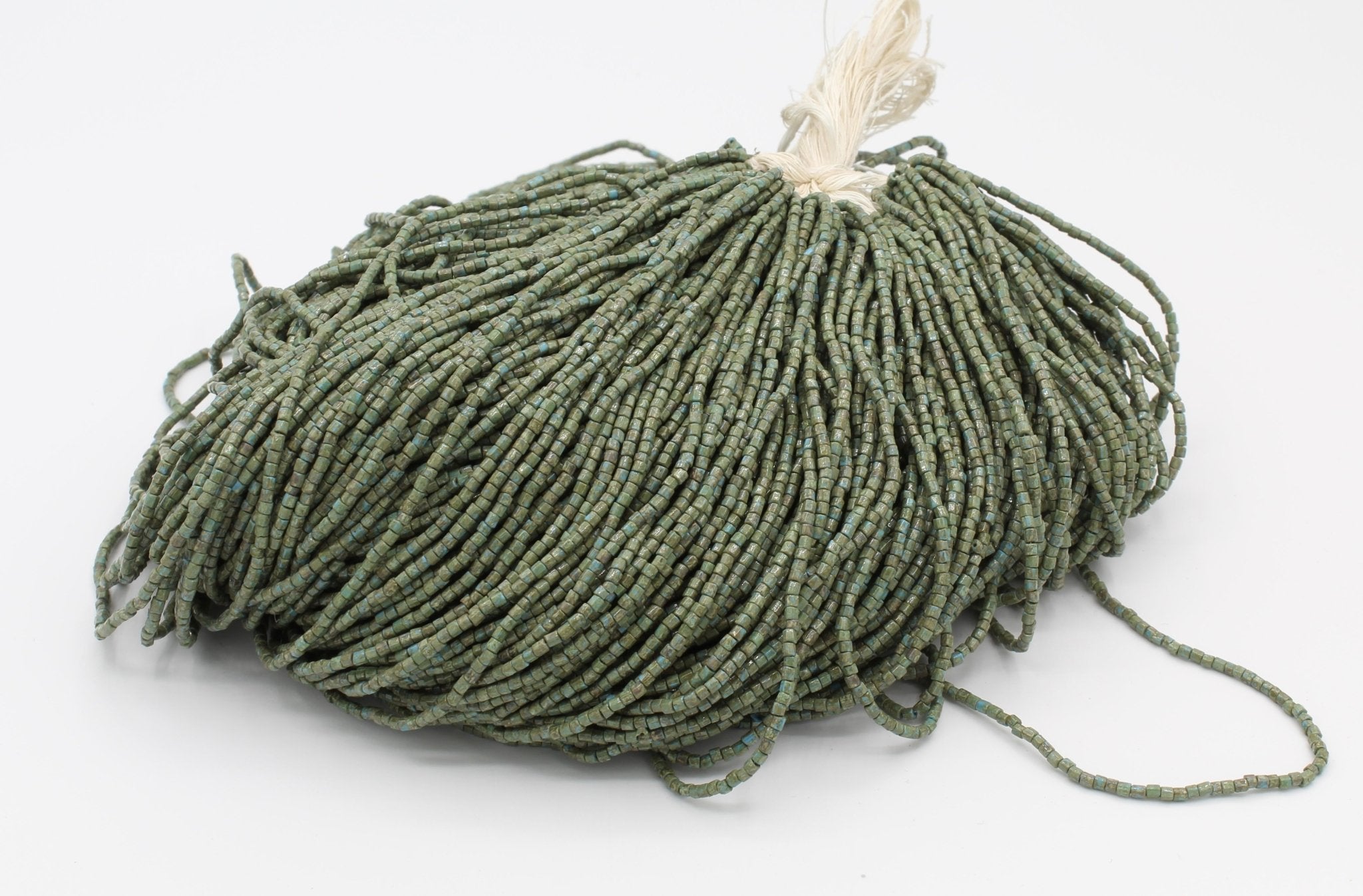 These beads are sold by the hank. Each hank has approximately 3,500 beads on 12 strings. They are often used in bead embroidery and Native American beading and regalia.