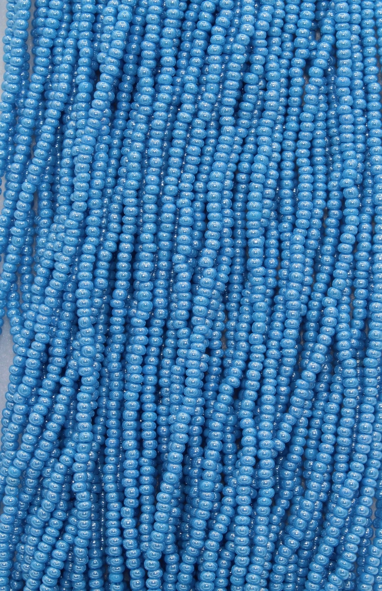 These beads are sold by the hank. Each hank has 12 strands with a total of approximately 4,000 beads. Lined up on a needle, roughly 17 beads = 1 inch (25mm).