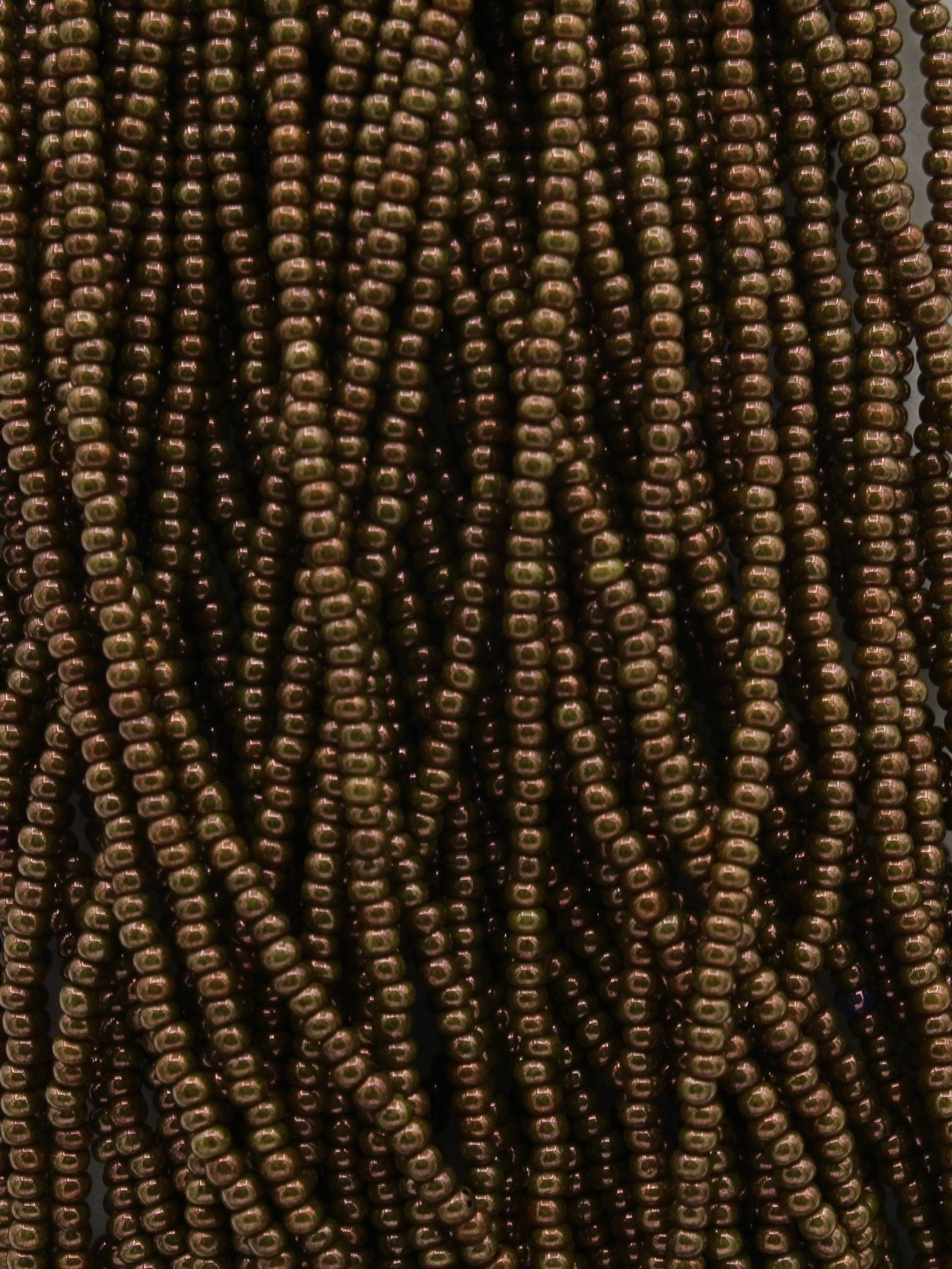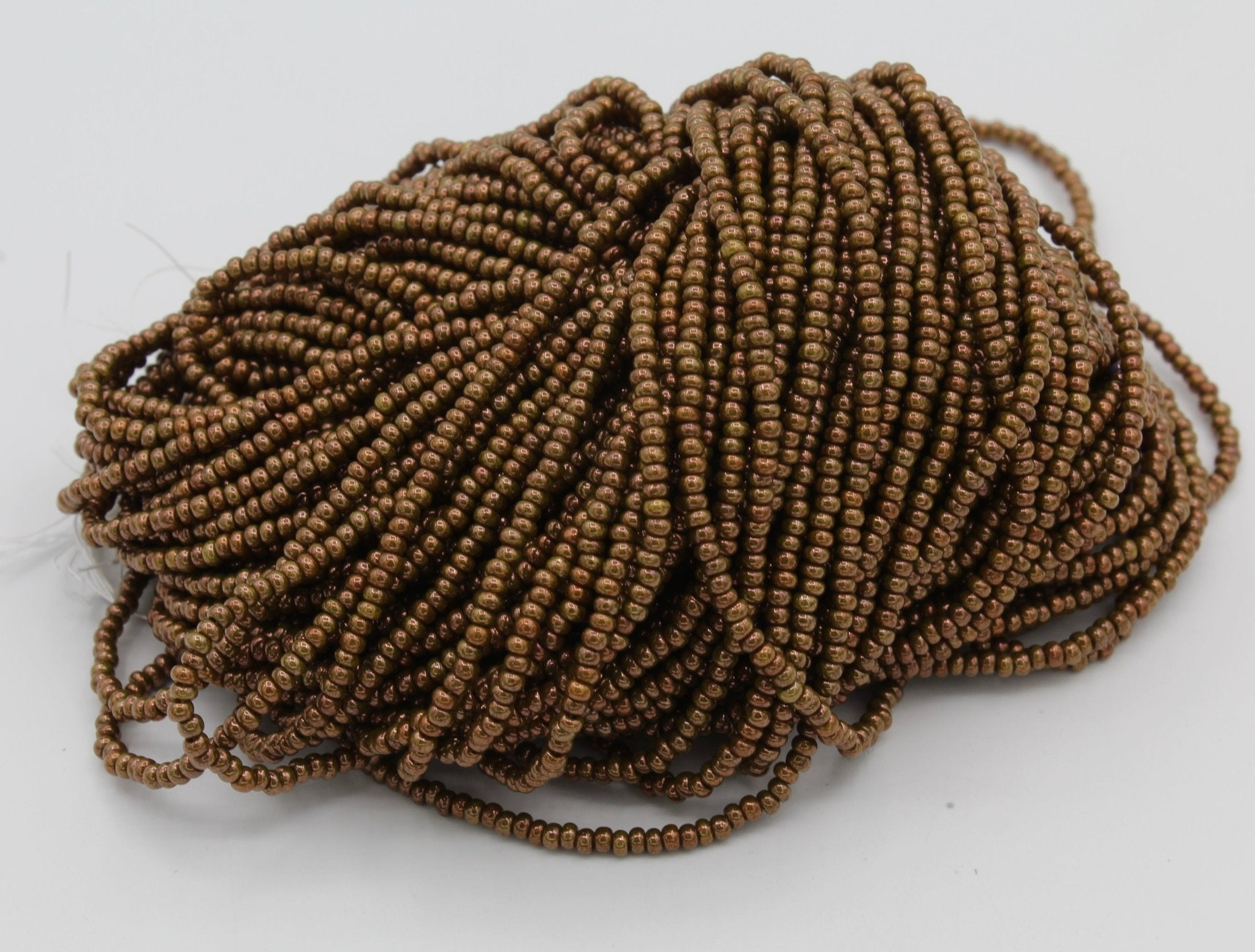 These beads are sold by the hank. Each hank has 12 strands with a total of approximately 4,000 beads. Lined up on a needle, roughly 17 beads = 1 inch (25mm).
