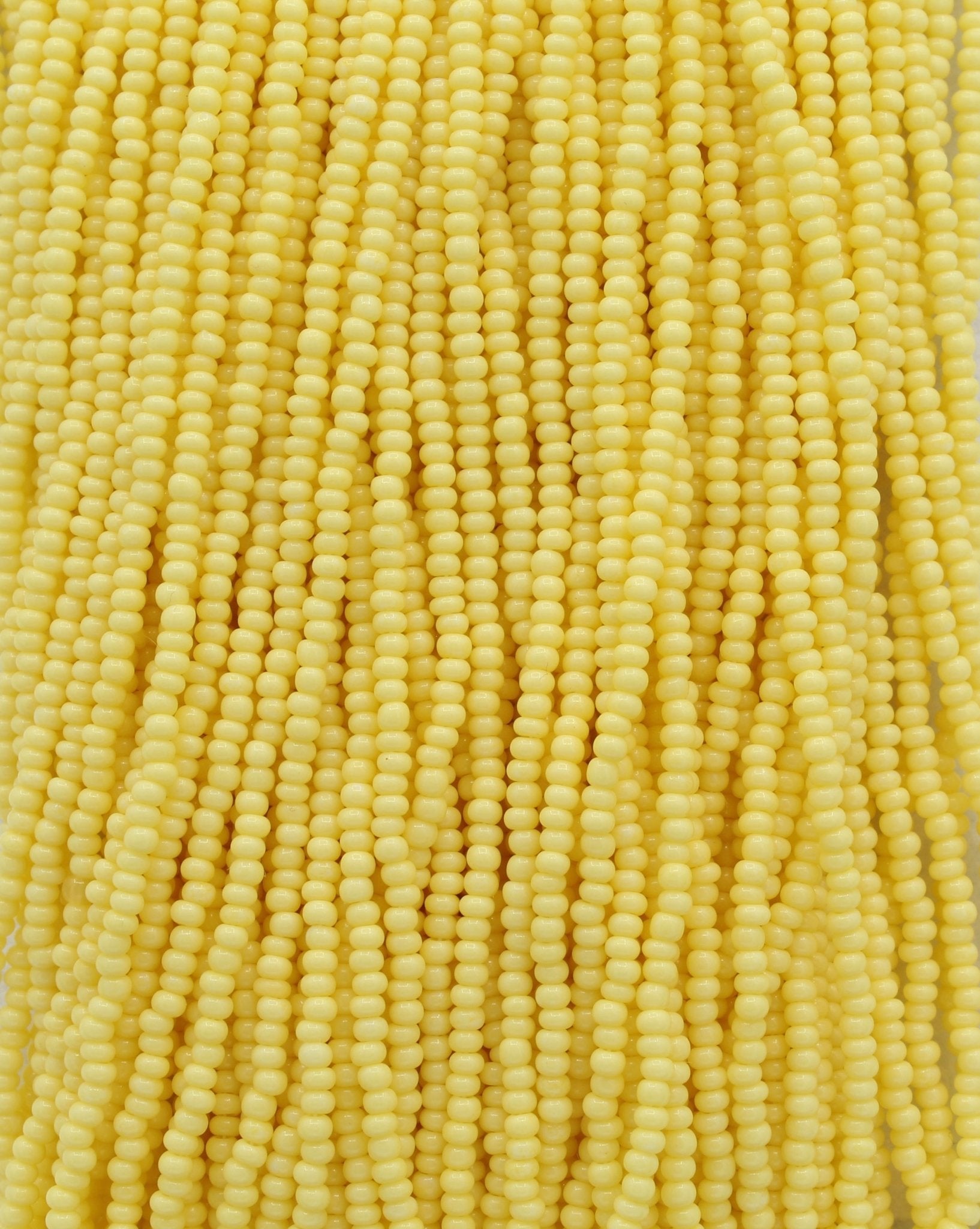 These beads are sold by the hank. Each hank has 12 strands with a total of approximately 4,000 beads. Lined up on a needle, roughly 17 beads = 1 inch (25mm).