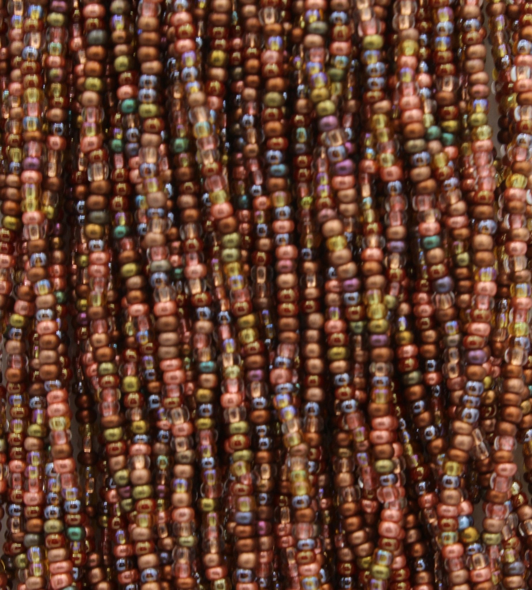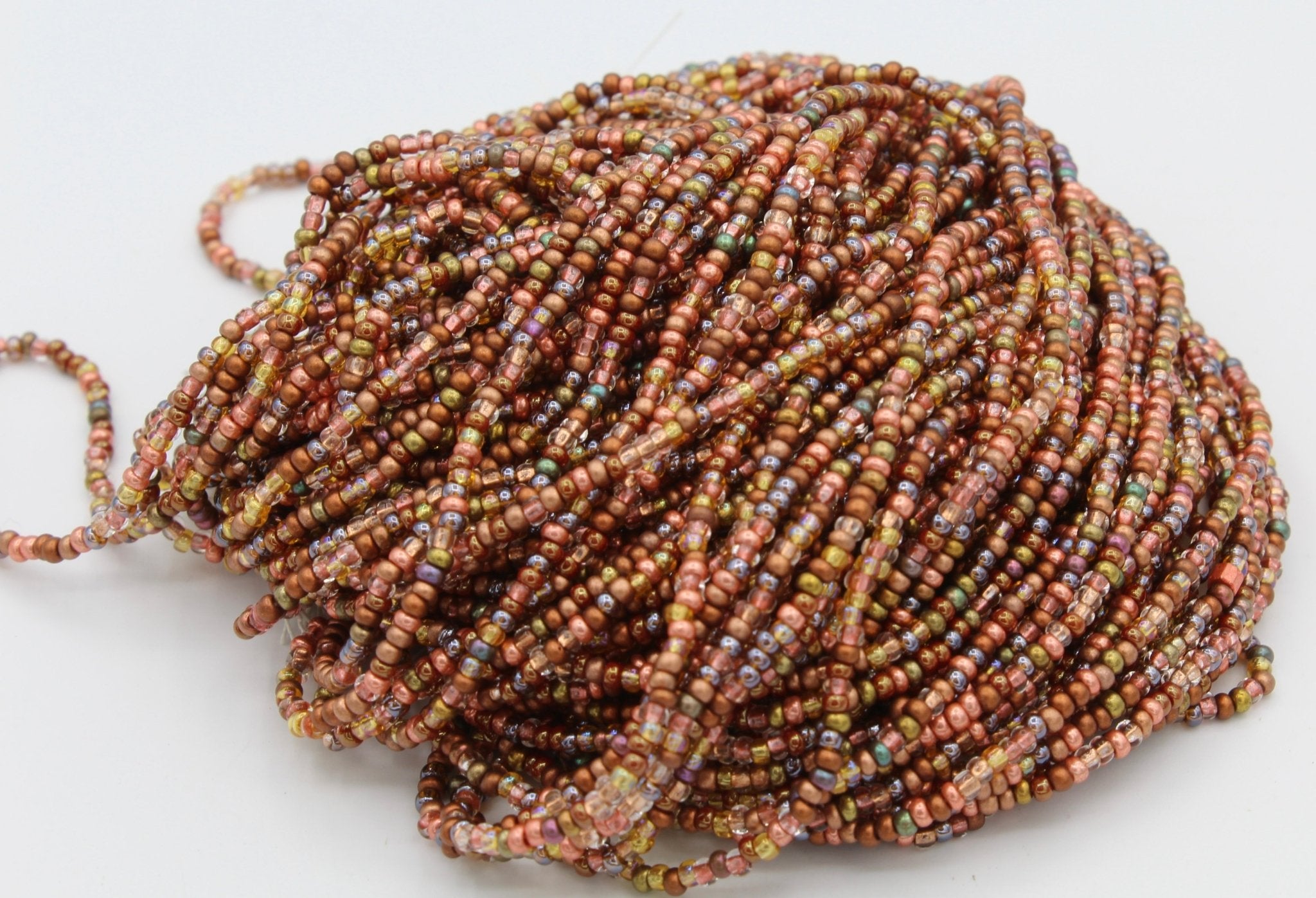 These beads are sold by the hank. Each hank has 12 strands with a total of approximately 4,000 beads. Lined up on a needle, roughly 17 beads = 1 inch (25mm).
