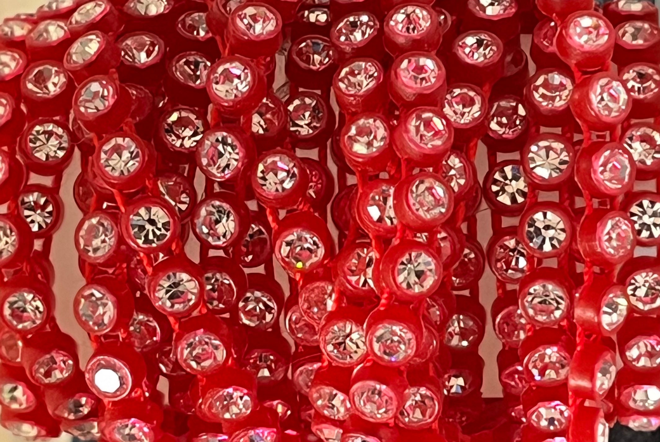 This crystal banding is size SS13 (4mm crystals). It has clear crystals set in red banding.