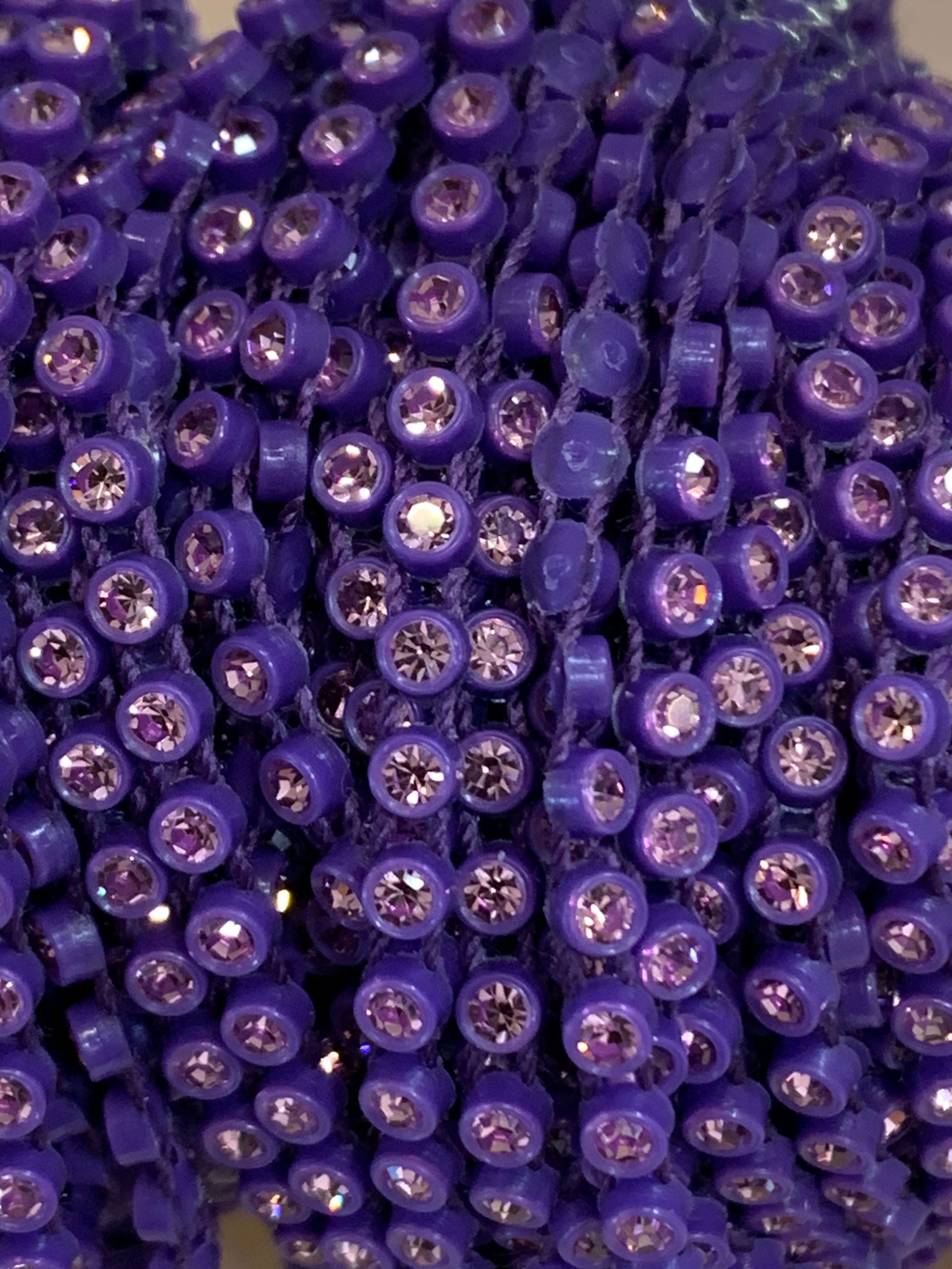 This crystal banding is size SS8 (3mm crystals). The crystals are purple set in purple banding.