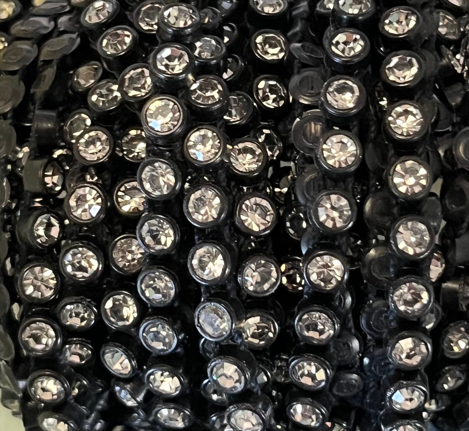 This crystal banding is size SS13 (4mm crystals). It has clear crystals set in black banding.