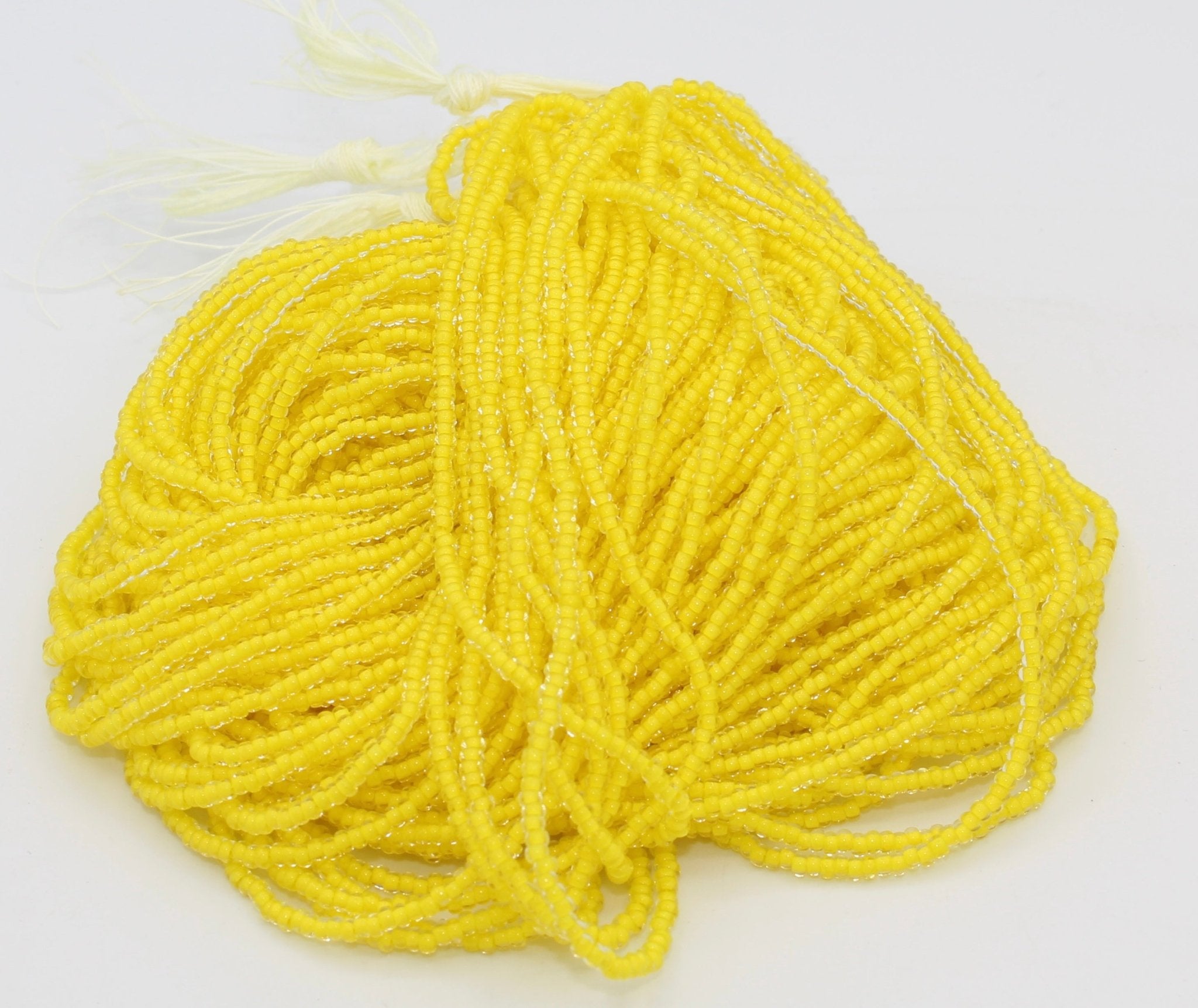 These beads are sold by the hank. Each hank has 12 strands with a total of approximately 4,000 beads. Lined up on a needle, roughly 17 beads = 1 inch (25mm).