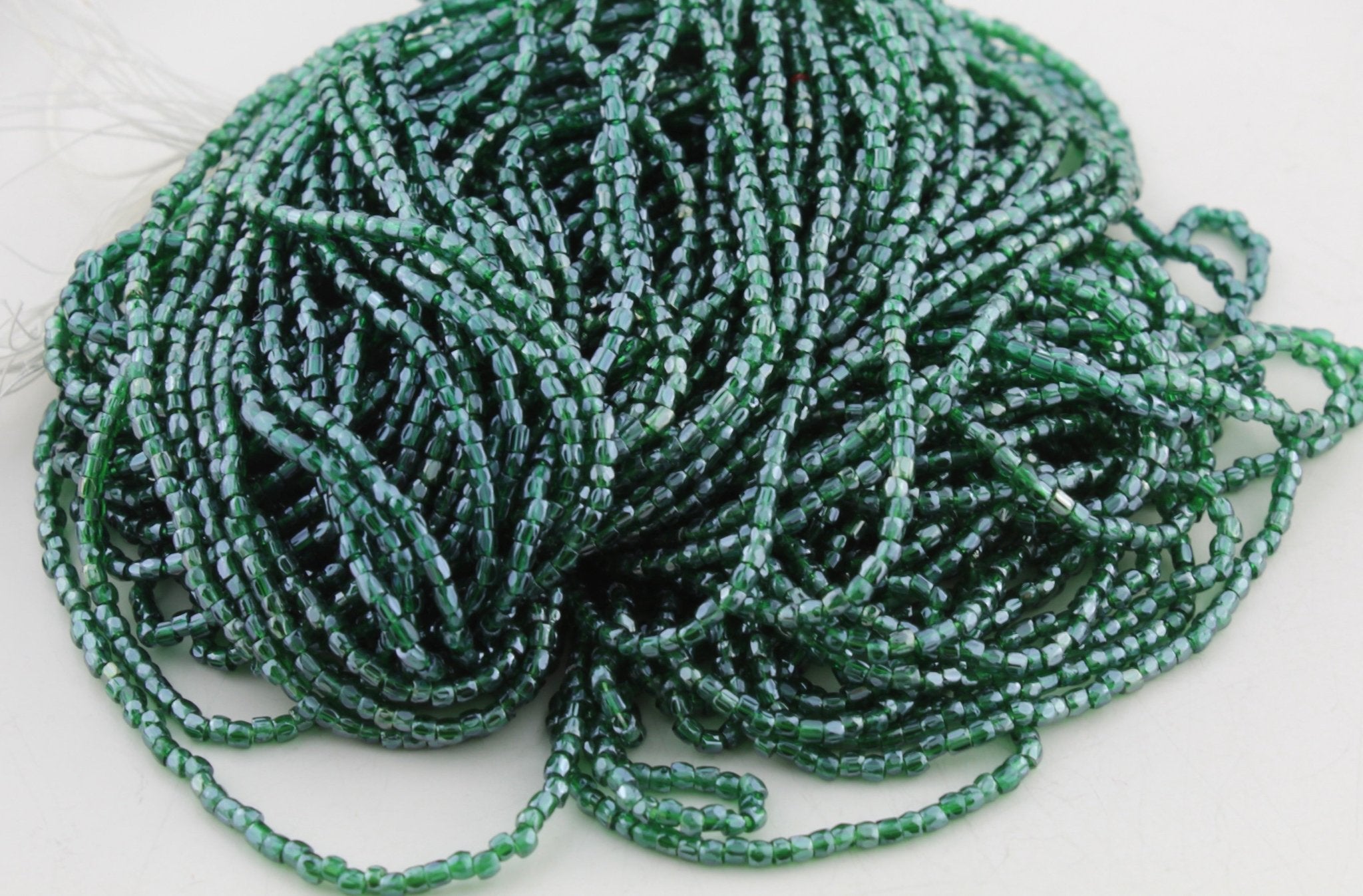 Size 12 Tri-Cuts are often used in bead embroidery to add sparkle. There are approximately 18 beads per inch.