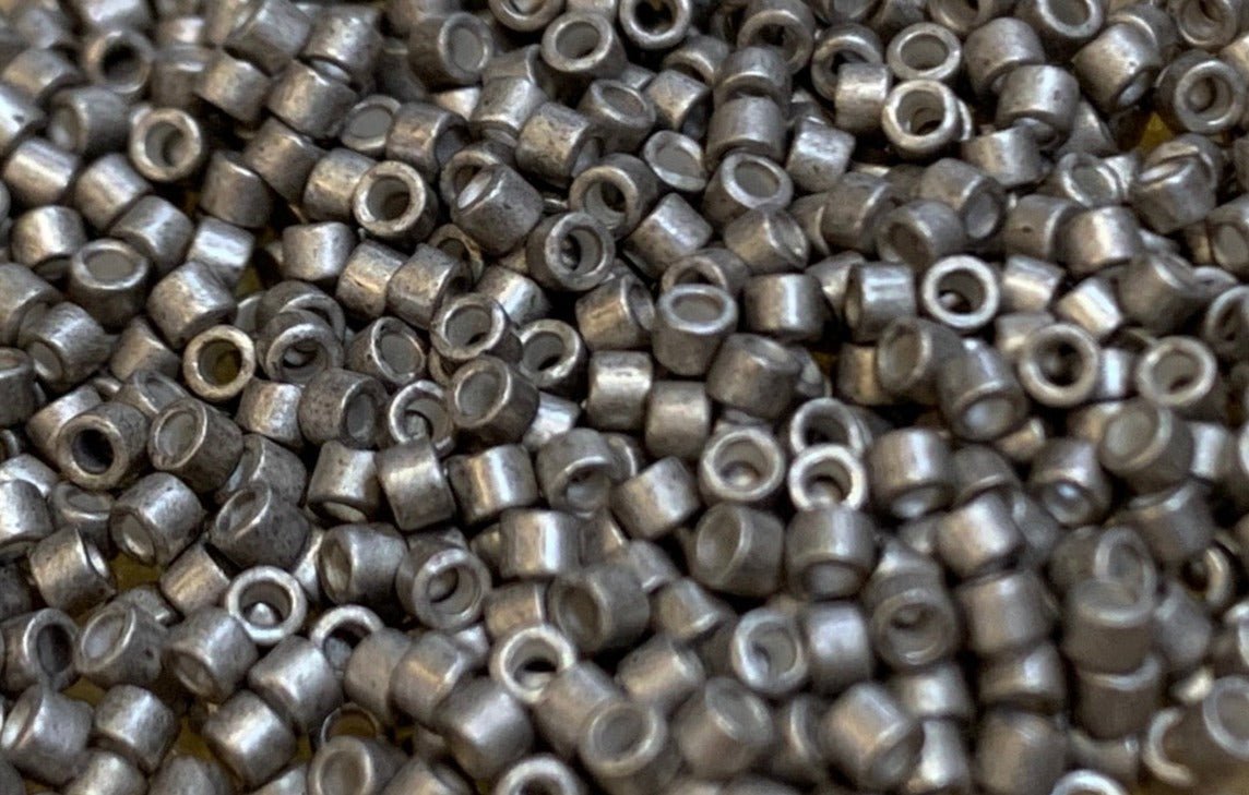 These are size 11 Delica Beads. Delica beads are glass beads made by the Miyuki company in Japan. Size 11 is smaller than size 10.