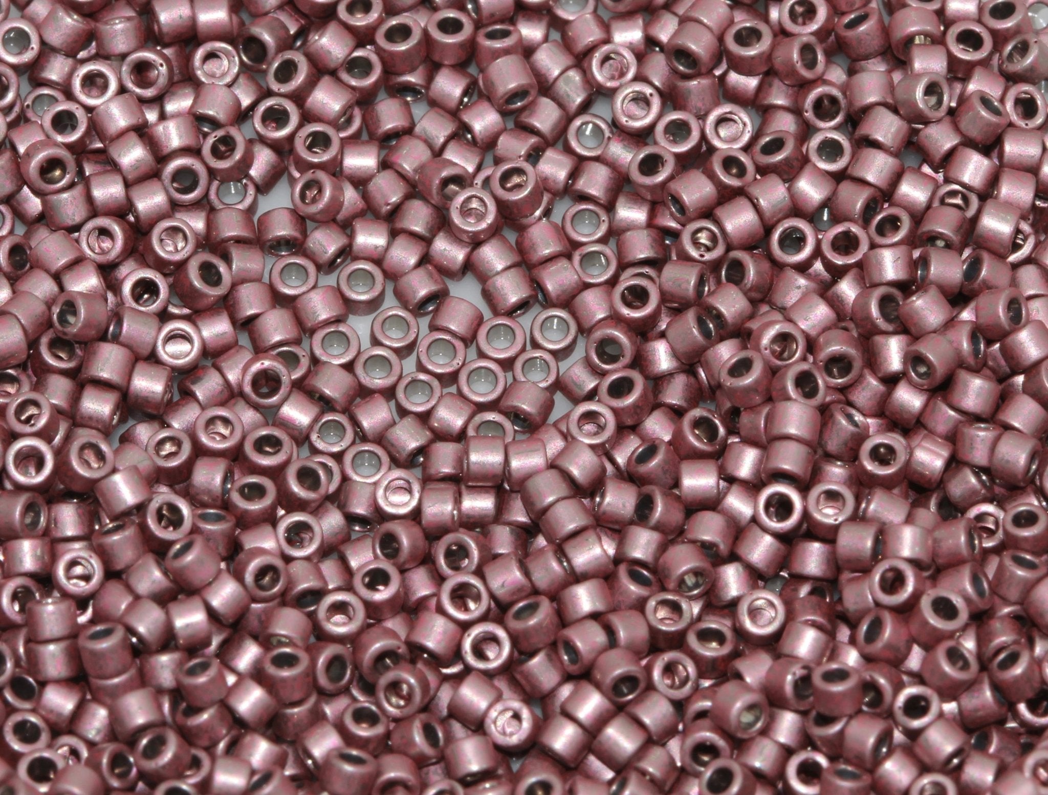 These are size 11 Delica beads. They are sold in a 7.7 gram tube, with approximately 2600 beads.