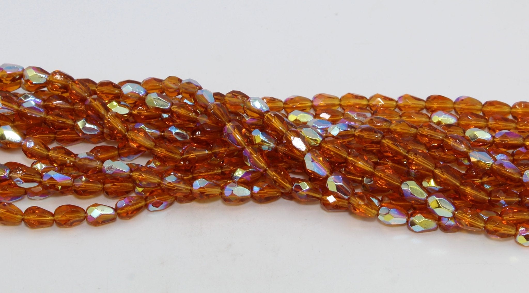 Dark Topaz AB - Faceted Teardrop Beads - 7 x 5mm