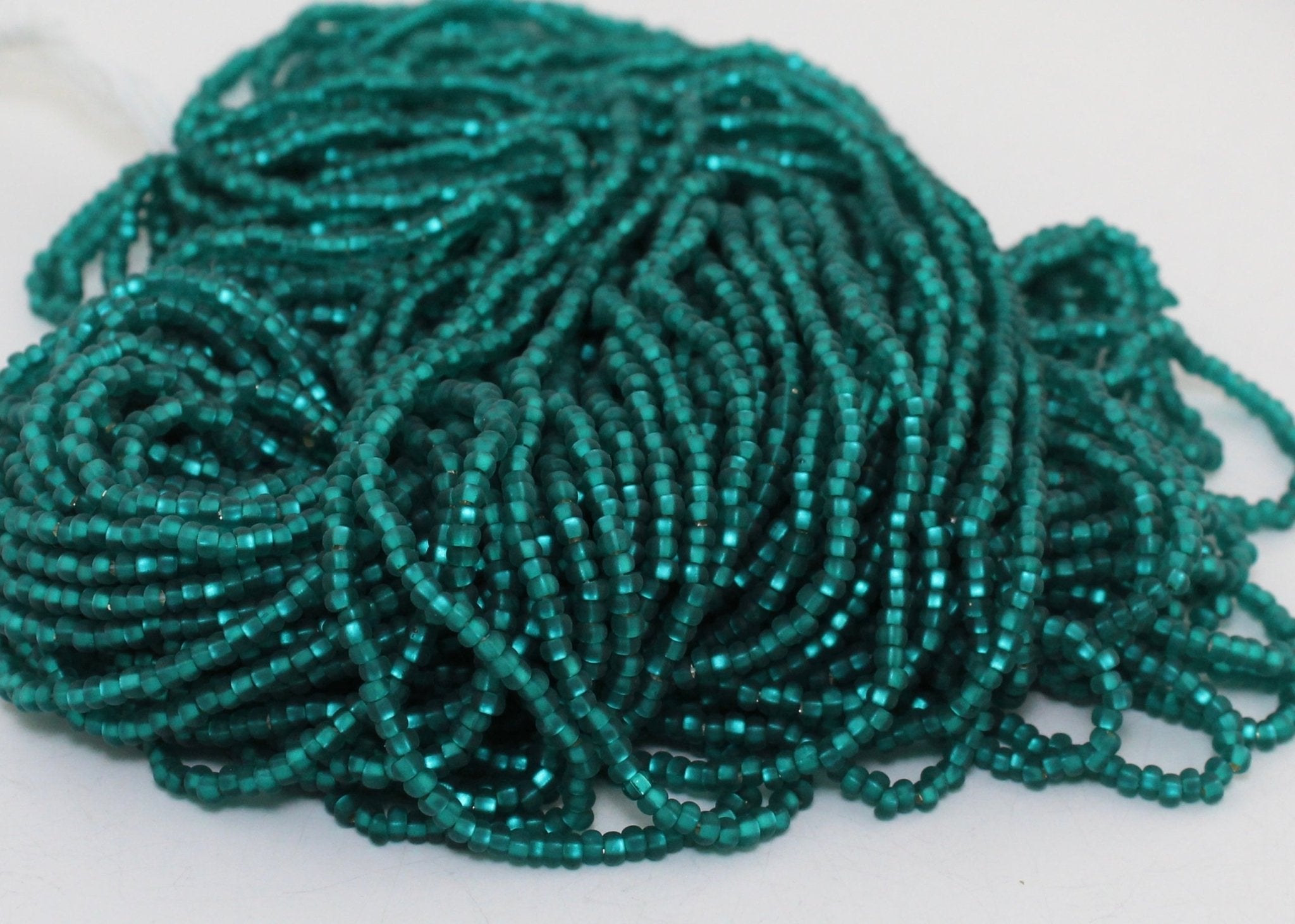 These beads are sold by the hank. Each hank has 12 strands with a total of approximately 4,000 beads. Lined up on a needle, roughly 17 beads = 1 inch (25mm).