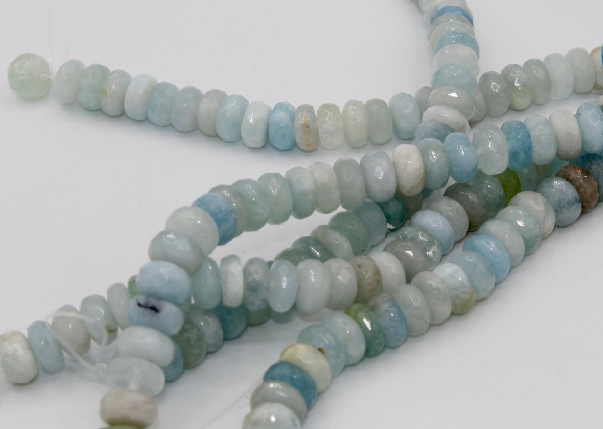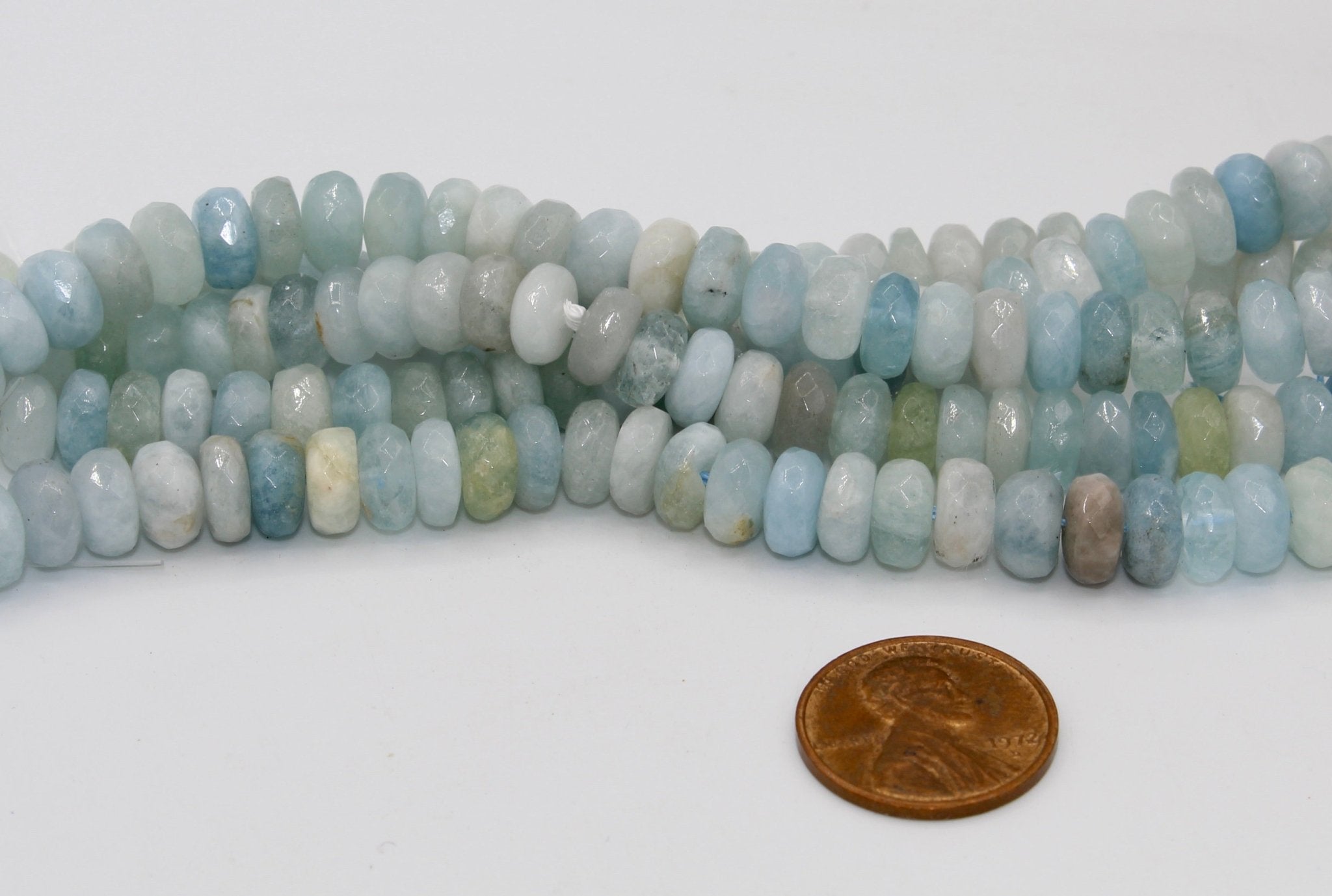 These beautiful aquamarine beads are 8 x 4mm faceted rondelles.