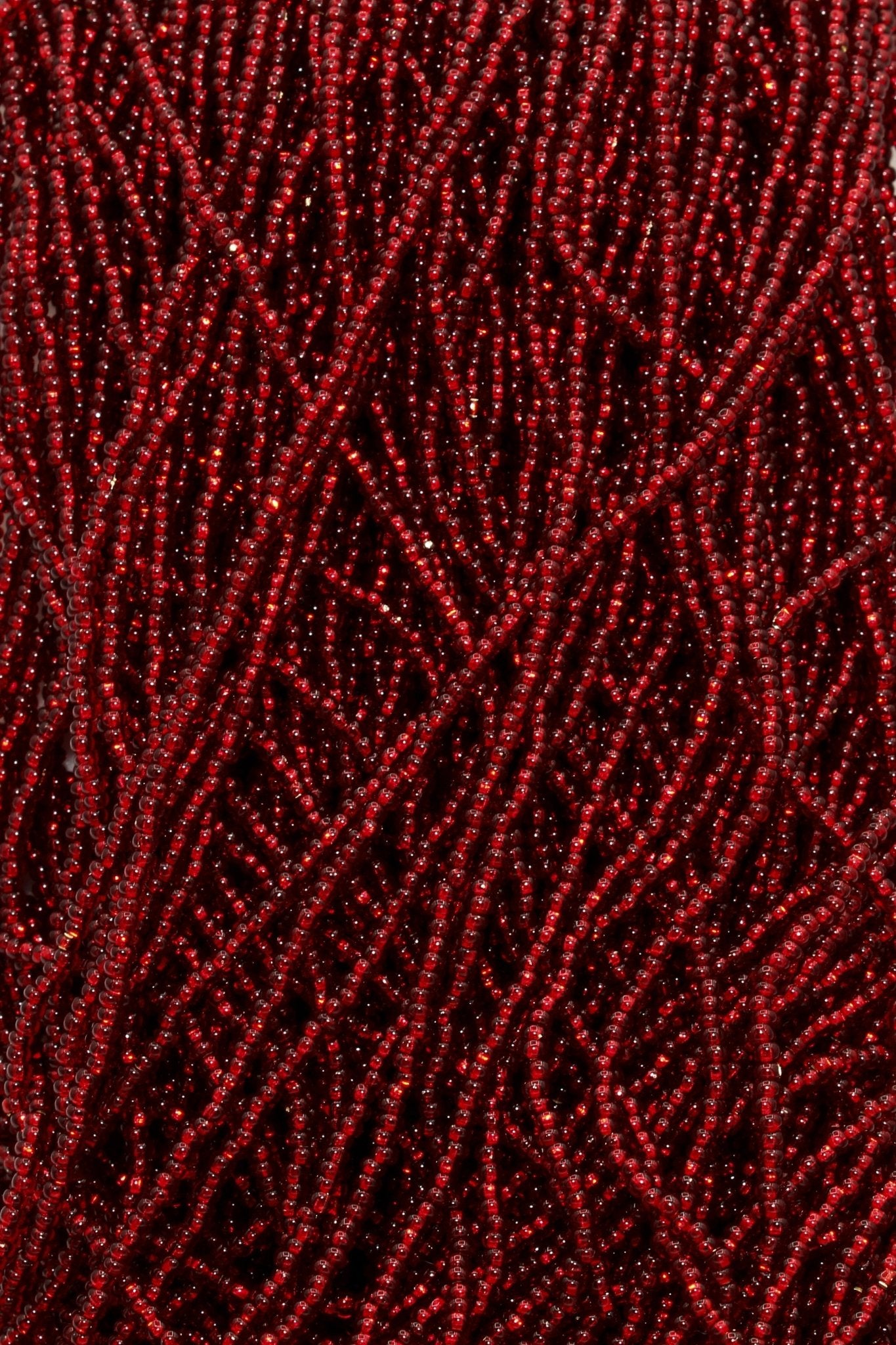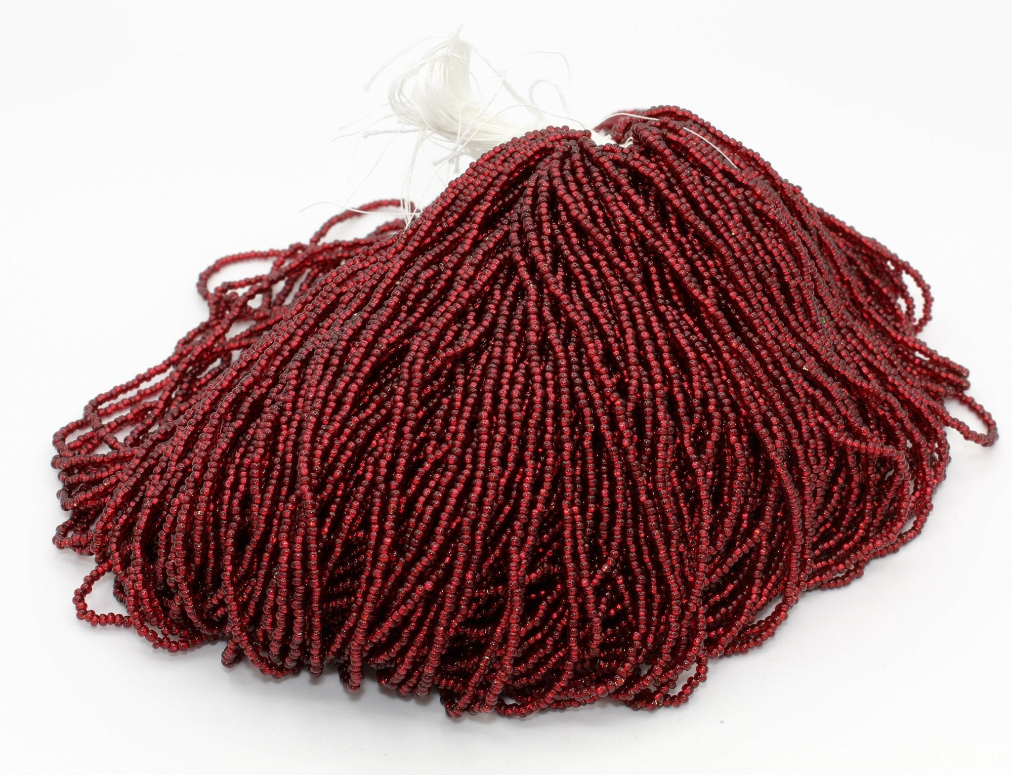 These beads are sold by the hank. Each hank has 12 strands with a total of approximately 4,000 beads. Lined up on a needle, roughly 17 beads = 1 inch (25mm).