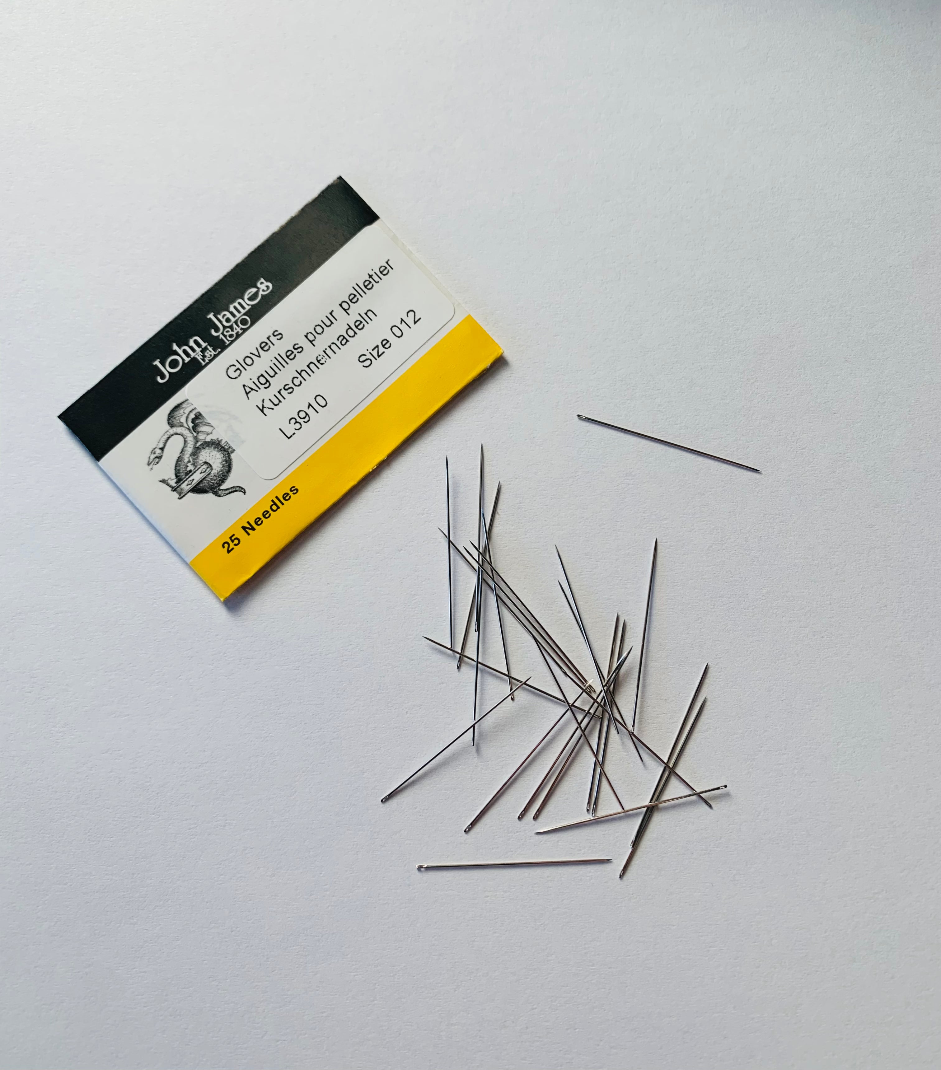 These needles are size 12 which is the smallest size of Glovers. They are 1.15" long and meant for lighter leather work such as attaching beads. They are the only size Glover needle that will go through size 11 seed beads.