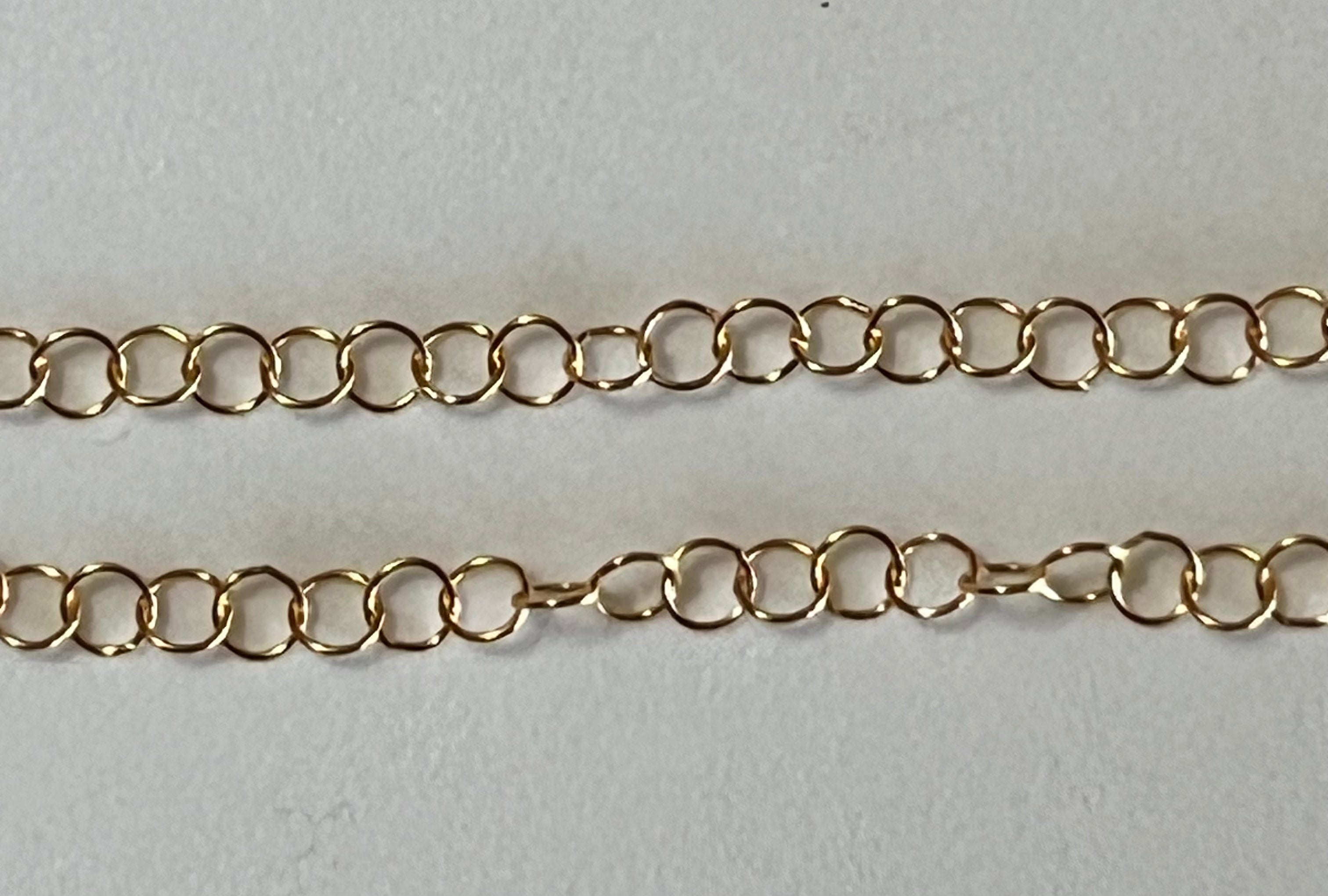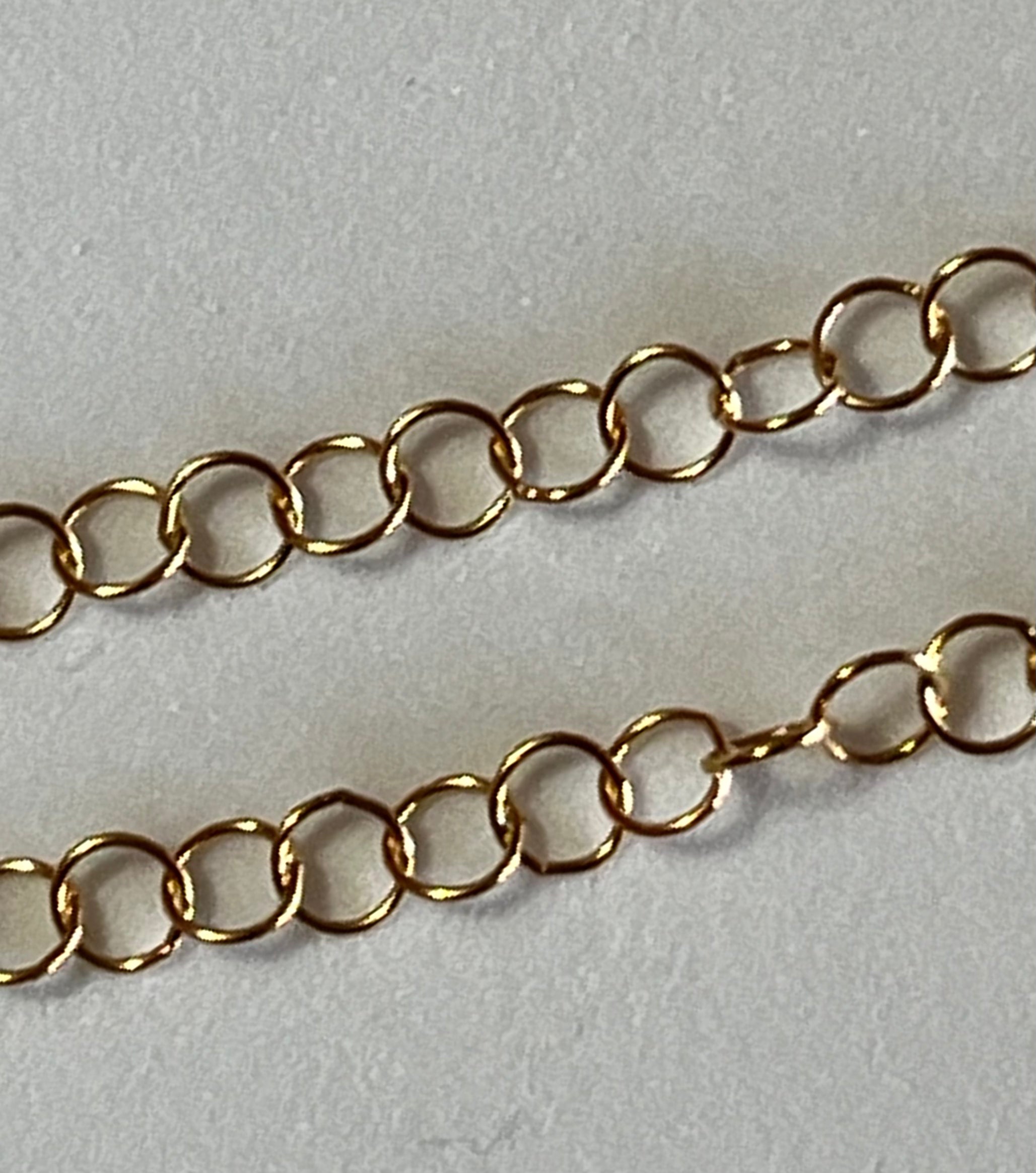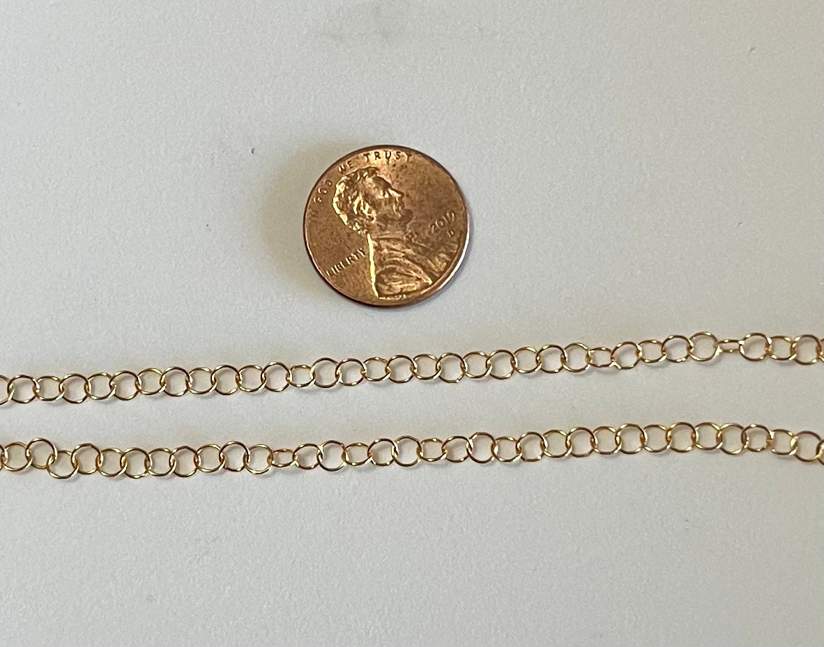 This chain is composed of circle links that are 3mm (1/8”). All rings are soldered shut.