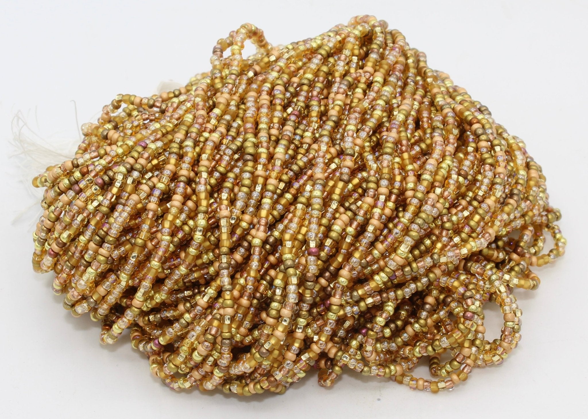 These beads are sold by the hank. Each hank has 12 strands with a total of approximately 4,000 beads. Lined up on a needle, roughly 17 beads = 1 inch (25mm).