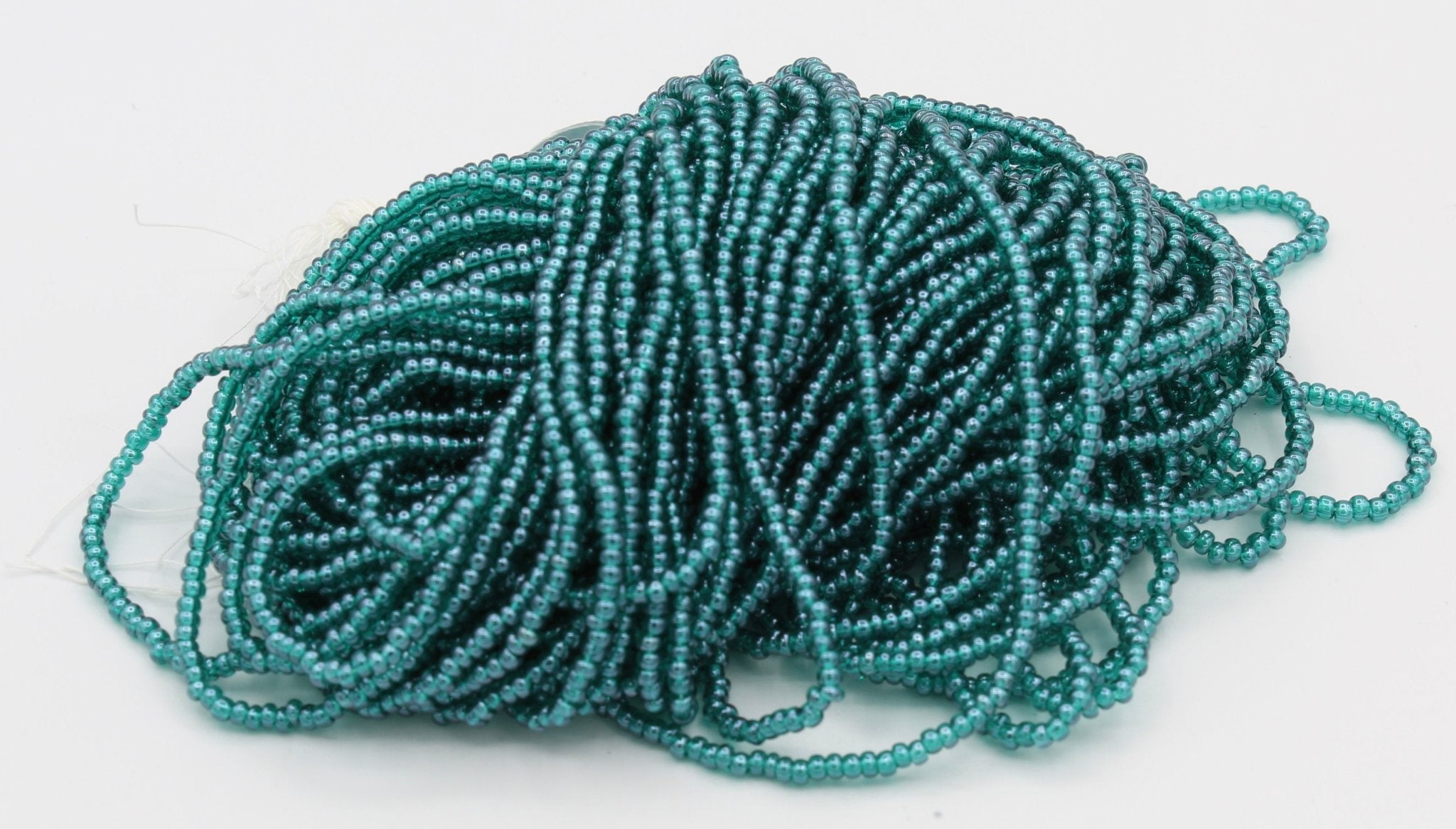 These beads are sold by the hank. Each hank has 12 strands with a total of approximately 4,000 beads. Lined up on a needle, roughly 17 beads = 1 inch (25mm).